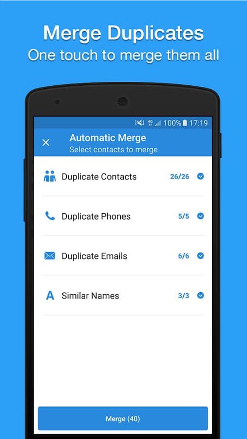 - Tüm yinelenen kişileri birleştirme imkanı