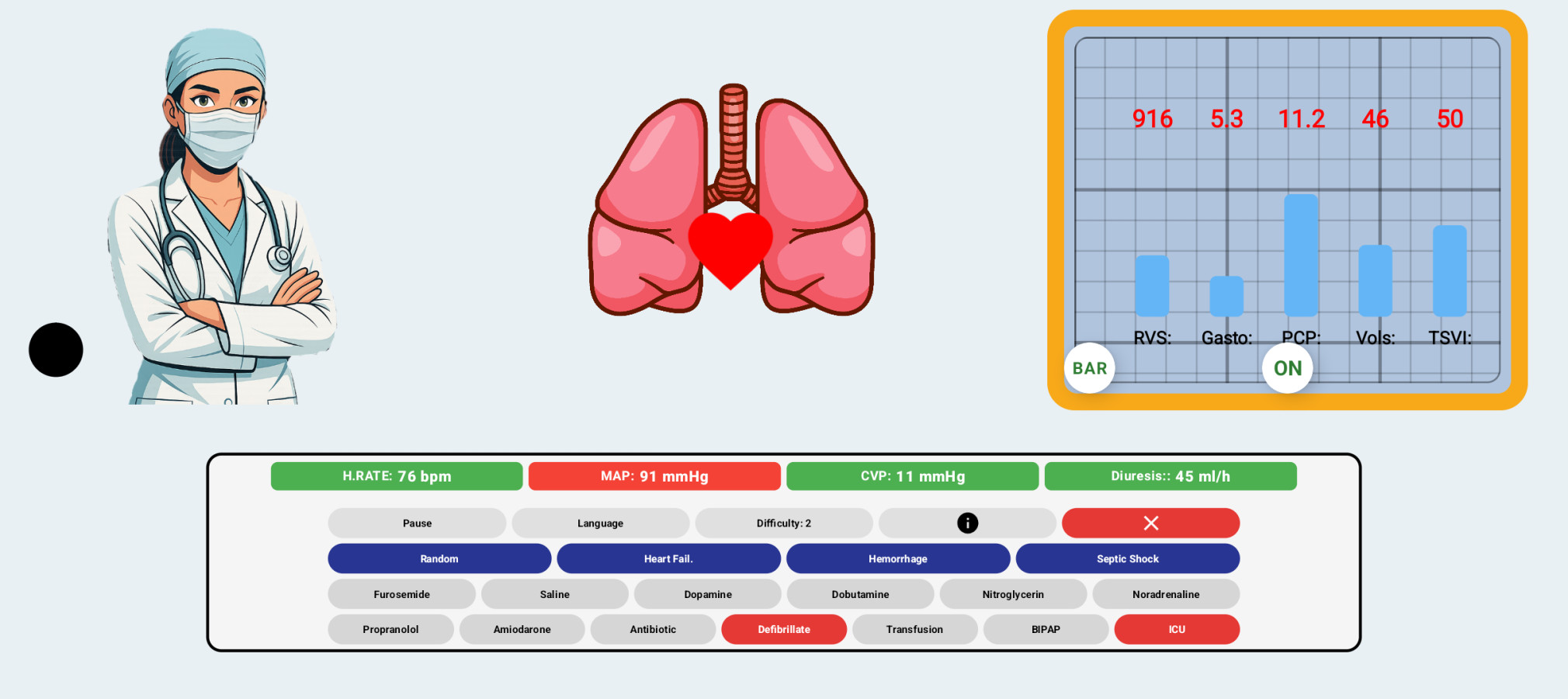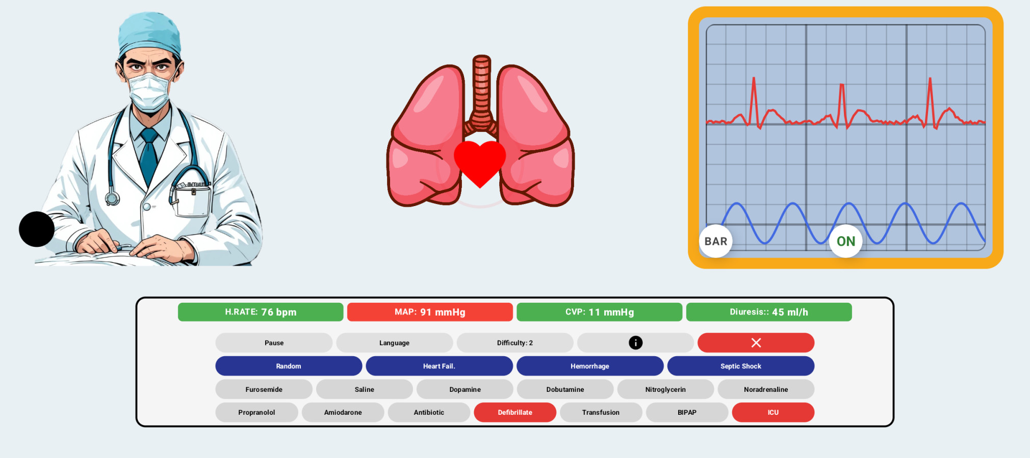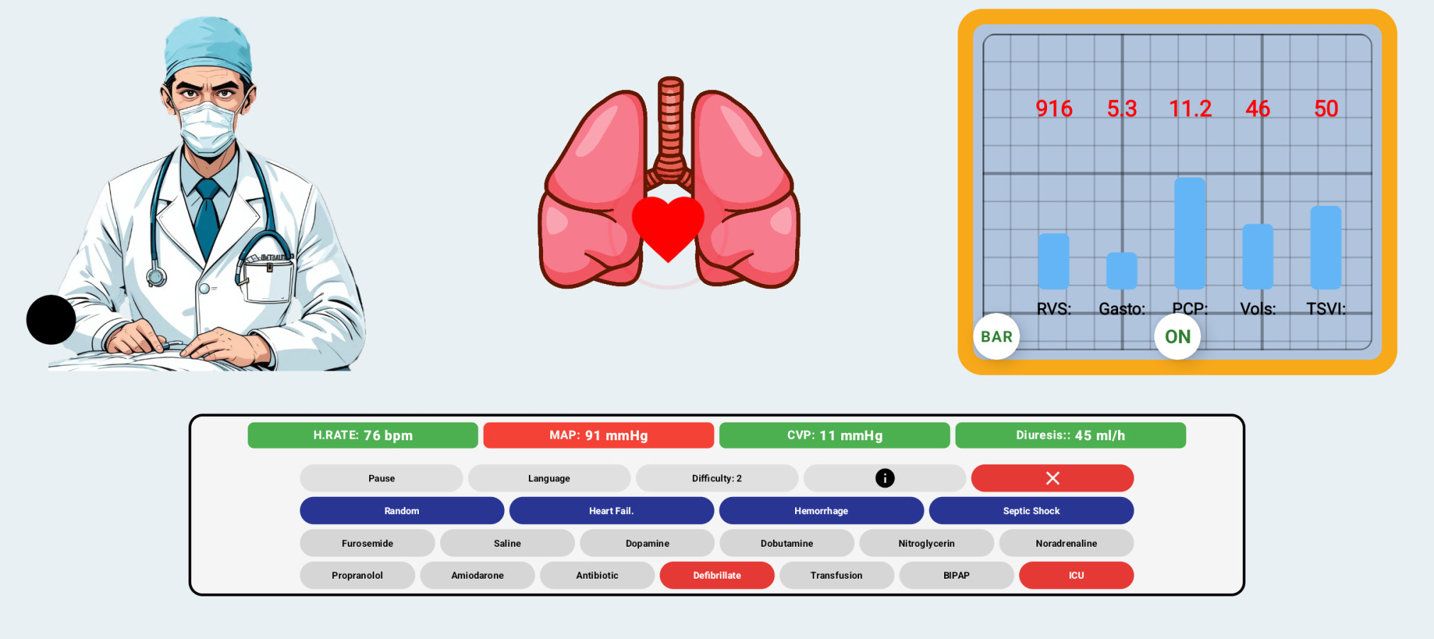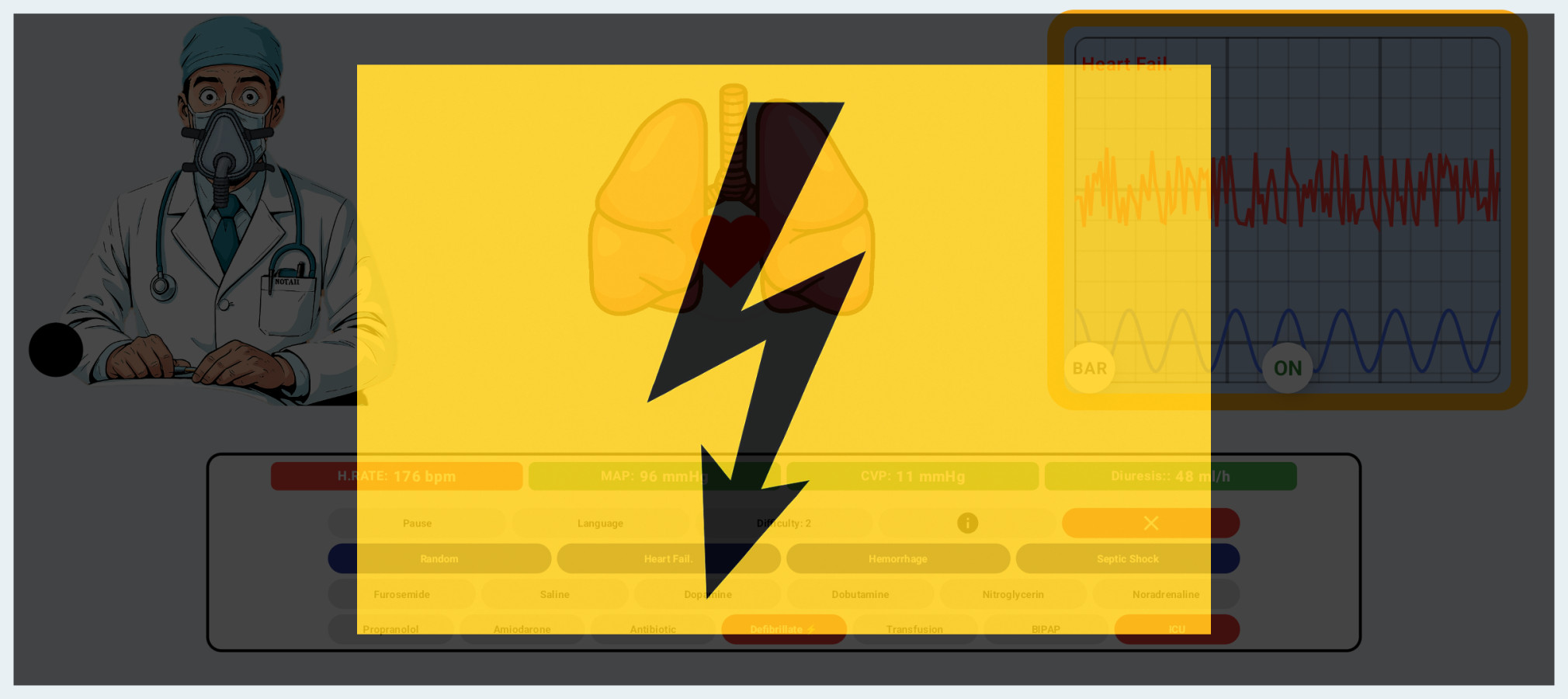 SimShock — bu bir tıp kitabı değil, adrenalini sevenler için gerçek bir meydan okuma! Sizi ekstrem senaryolar bekliyor: kalp duruyor, tansiyon düşüyor, hasta bayılıyor… Her karar, bir hayatı kurtarma veya kaybetme şansı. İlaçlar, kan transfüzyonları ve acil önlemler kullanarak, gerçek zamanlı değişiklikleri takip edin. Bu oyun, tepki sürenizi, stratejik düşünme yeteneğinizi ve baskı altında hareket etme kabiliyetinizi test edecek.