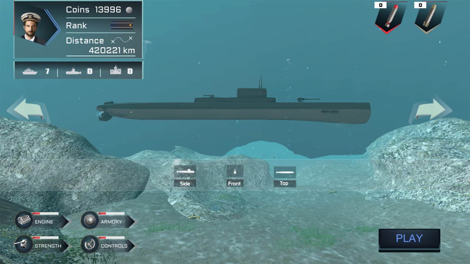 Denizaltı Simülatörü: Deniz Savaşı – Android için gerçekçi bir simülatör, burada bir denizaltıyı yöneteceksiniz. Bu oyunda bir denizaltı komutanı olacaksınız ve deniz savaşına katılacaksınız. Oyunda sunulan denizaltılardan birini seçin: Akula Typhoon 941, Kilo Sınıfı, ABD Ohio Sınıfı, HMS Anson, Akula III, HMS Astude, Vanguard Sınıfı Denizaltı, Poseidon A002, Expeditor - özel denizaltı, Poseidon A003. Tehlikeli bir yolculuğa çıkın, su altı dünyasını ve sayısız adayı keşfedin. Harika simülatörün tadını çıkarın ve deniz derinliklerinde sizi bekleyen düşman gemileri ve denizaltıları unutmayın. Düşmanlarla savaşta güçlü ve yıkıcı silahlar kullanın ve akıllı torpidolar veya balistik füzeler ile gemilerini yok edin.