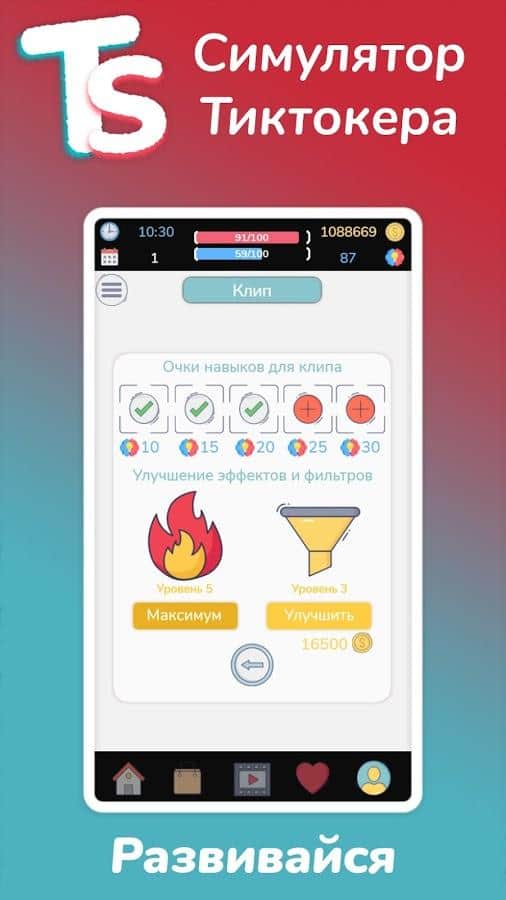Tiktoker Simülatörü - en popüler platformlardan biri olan TikTok, dünyada daha fazla tanıtım için her zaman kaliteli içeriğe ihtiyaç duyar. Sıfırdan kendi yolculuğunuza başlayın ve gerçek bir tiktoker olabilmek için heyecan verici zorlukları geçin. İçerik üzerinde deneyler yapın, videolar çekmeye ciddi şekilde odaklanın ve senaryolarını düşünün, popülarite kazanın ve daha da ilerleyin, kendinizi üst sıralara çıkarmak için duyguları ve hashtag'leri kullanın. Belirlenen hedefe ulaşmak ve sevdiğiniz işte para kazanmak için iyi bir taktik geliştirin.