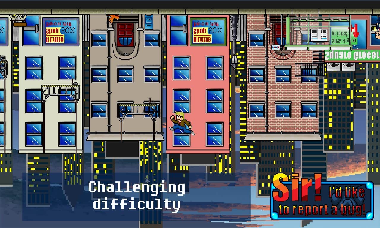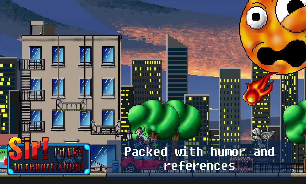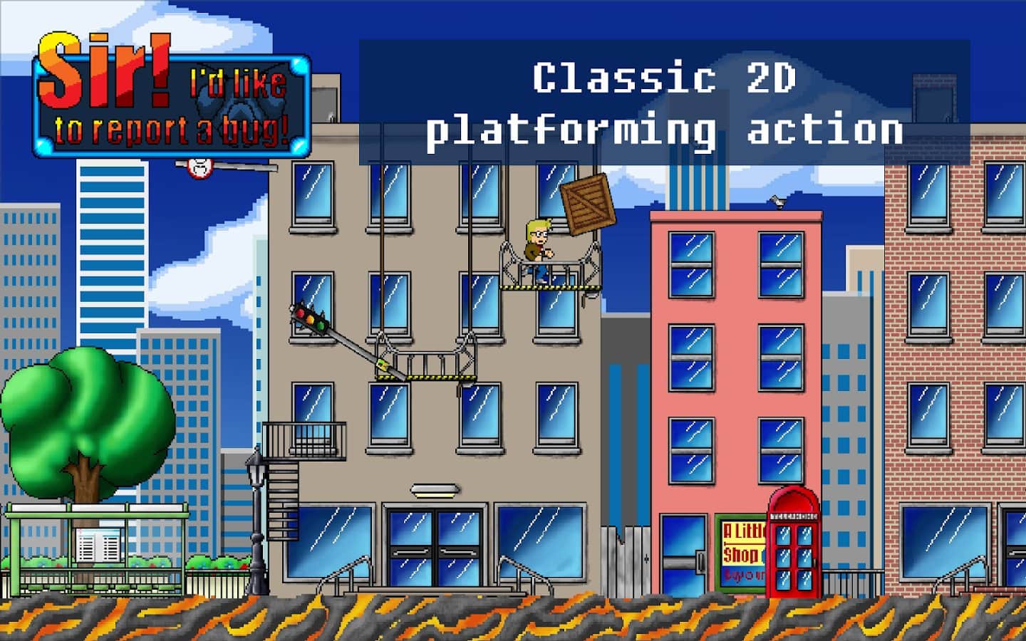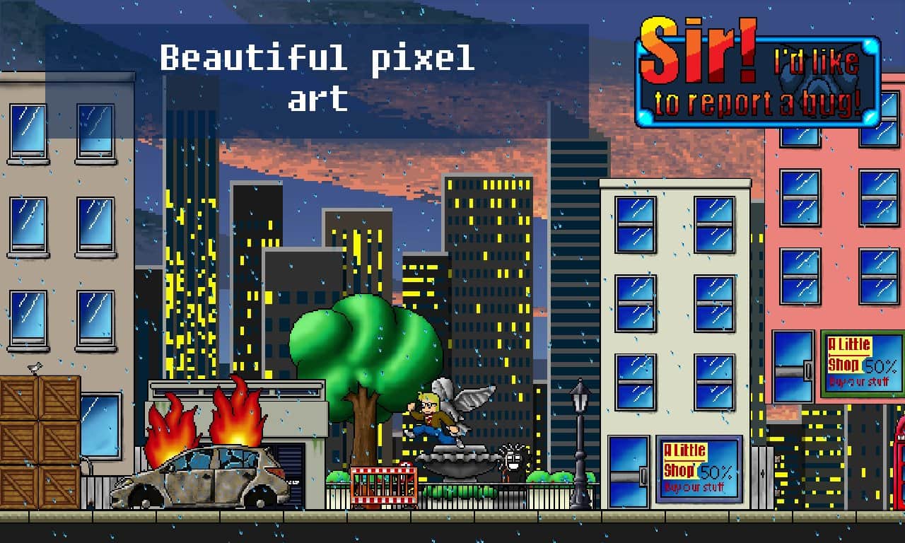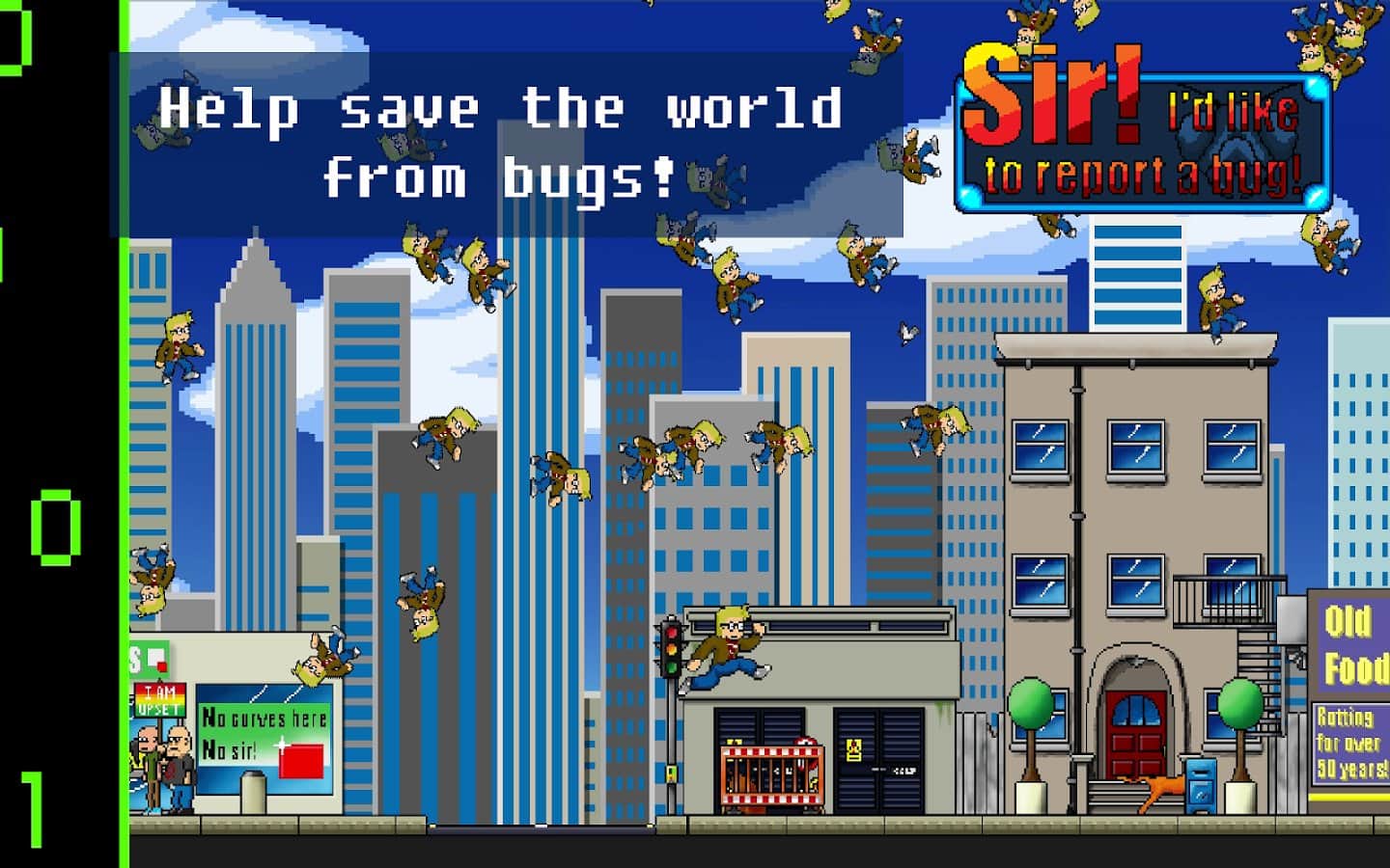 Beyefendi! Bir hata bildirmek istiyorum! - harika bir 2D platform oyunu, retro tarzında yapılmış. Oyunda eski oyun konsollarına özlem ve mizah ile süslenmiş muhteşem bir oynanış var. Çeşitli seviyelerde koşuyoruz, zıplıyoruz ve kendimizi öldürtmüyoruz.