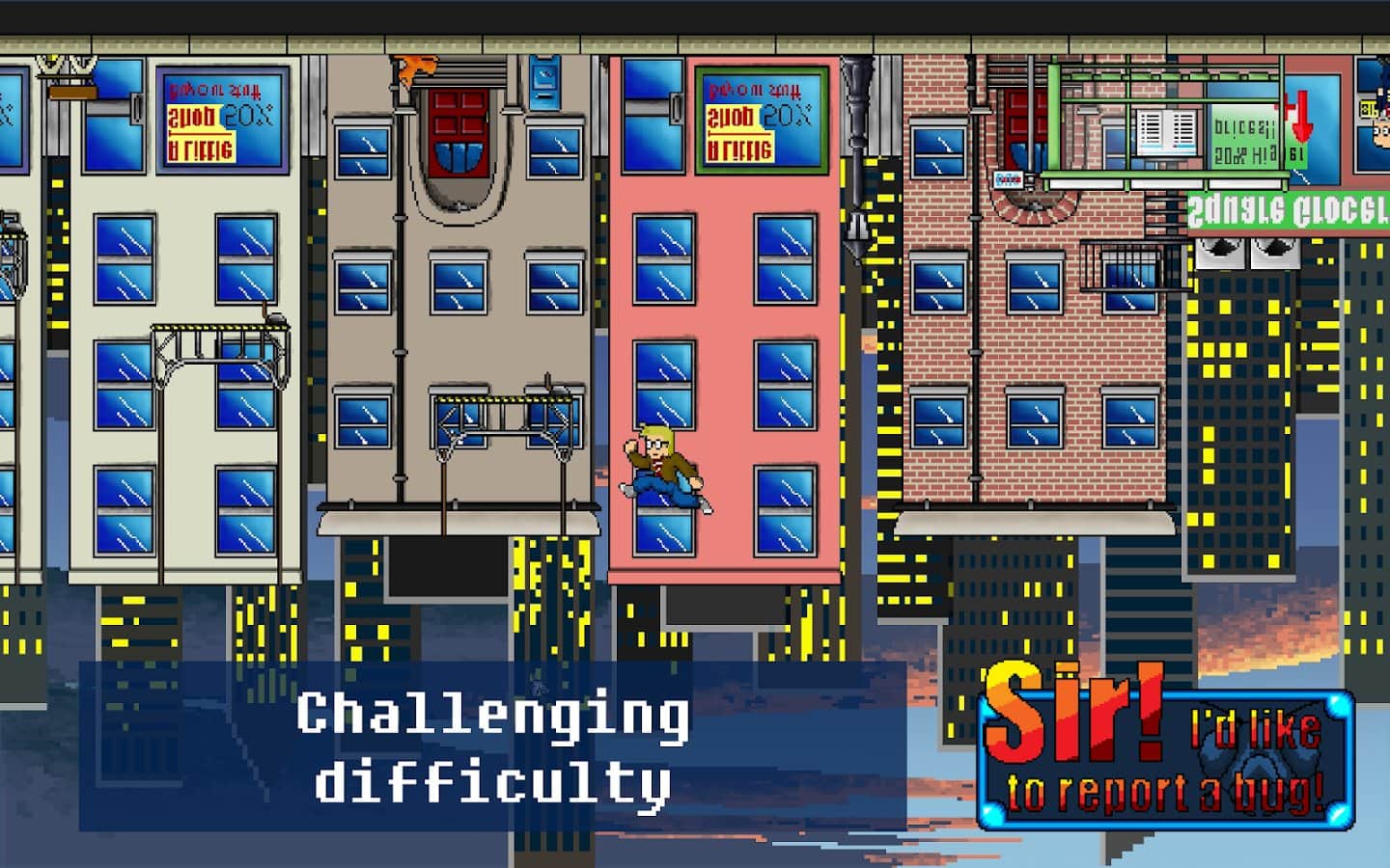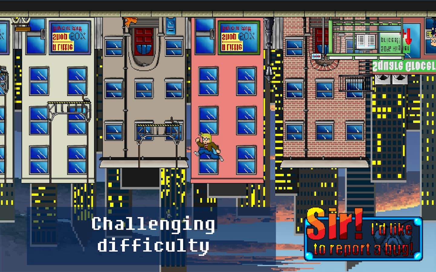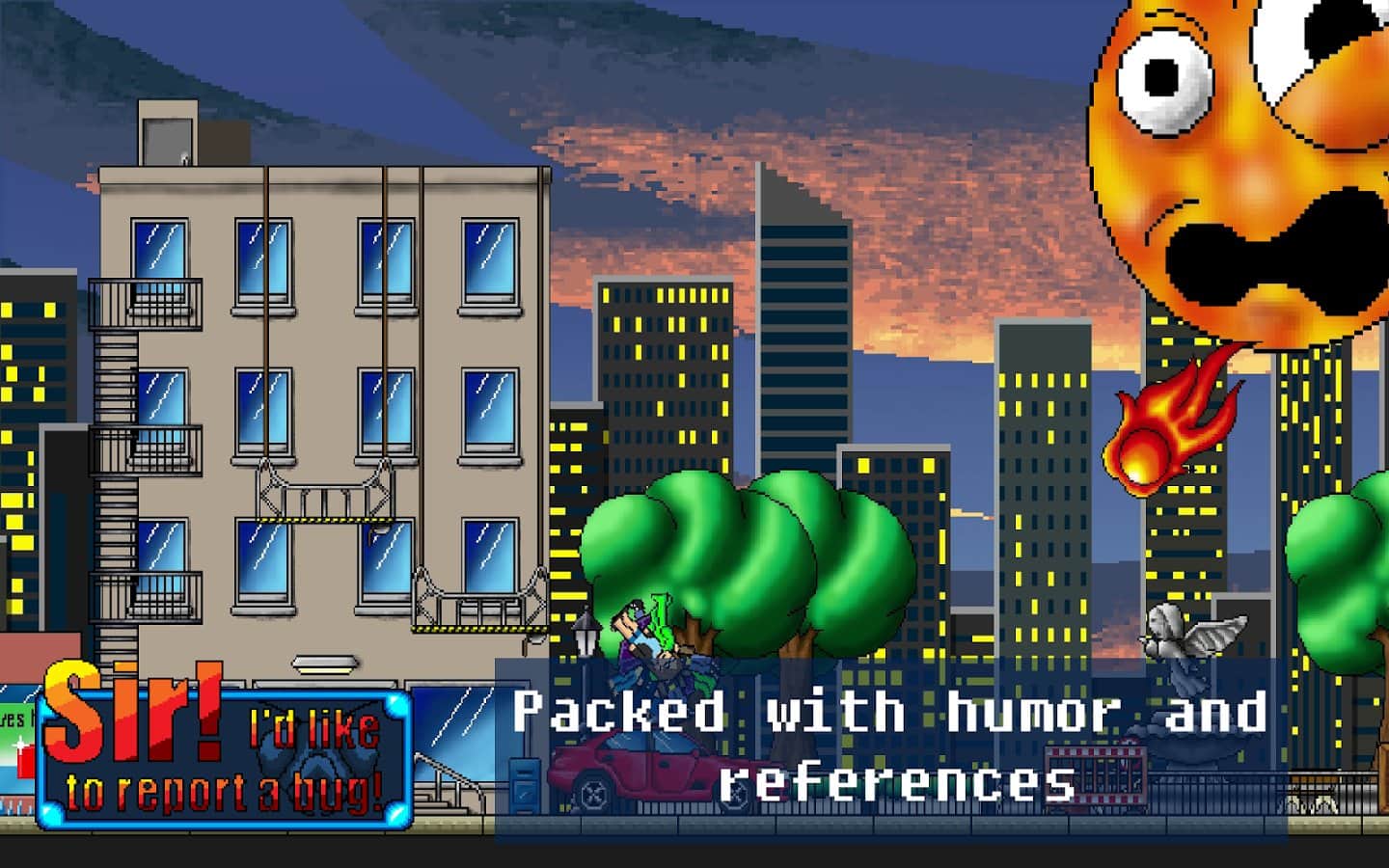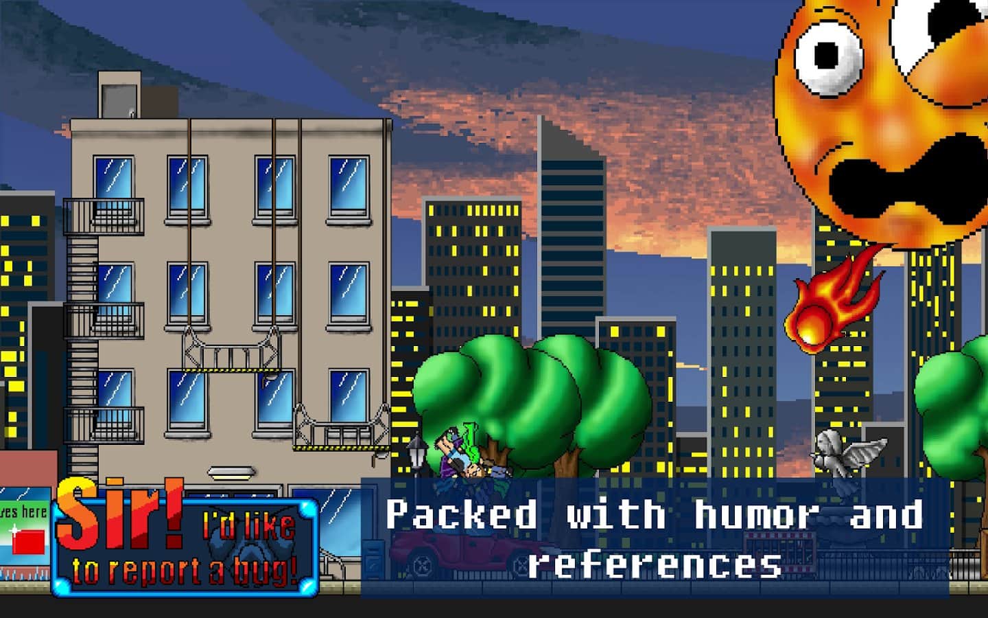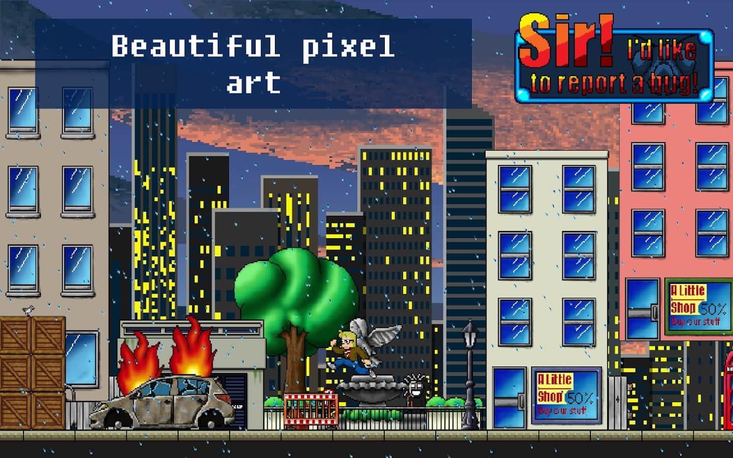 Beyefendi! Bir hata bildirmek istiyorum! - harika bir 2D platform oyunu, retro tarzında yapılmış. Oyunda eski oyun konsollarına özlem ve mizah ile süslenmiş muhteşem bir oynanış var. Çeşitli seviyelerde koşuyoruz, zıplıyoruz ve kendimizi öldürtmüyoruz.