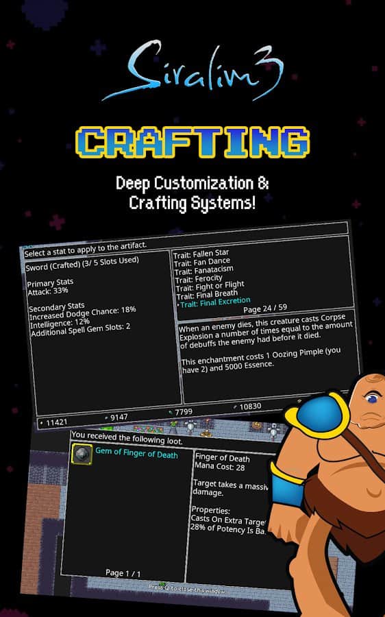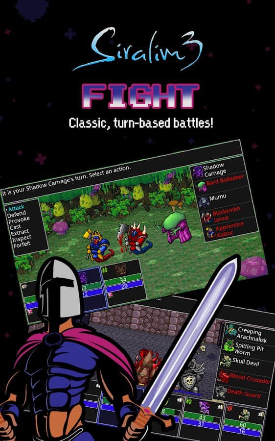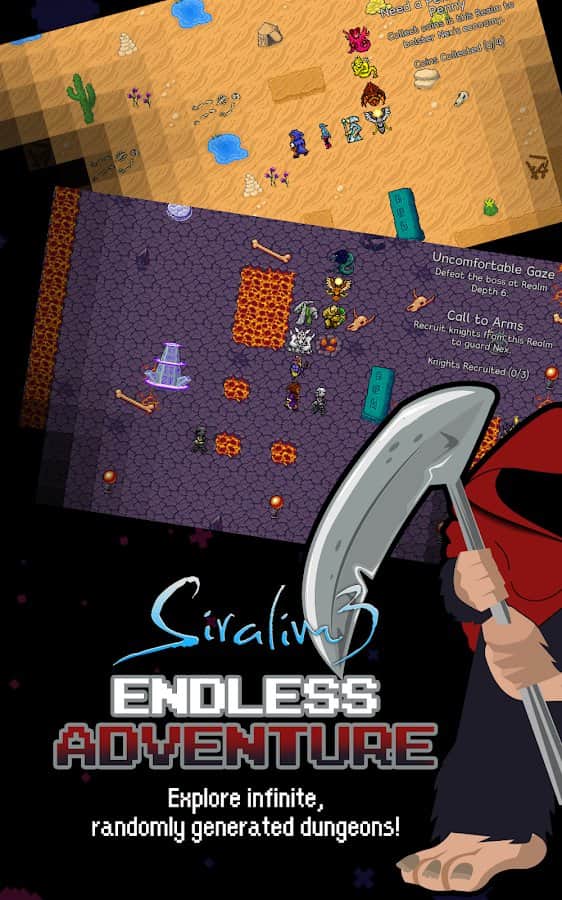 Siralim 3 (Canavar Evcilleştirme RPG) – Android için bir RPG oyunudur, burada bir kahramanla birlikte karanlık zindanları keşfedeceksiniz. Bu oyunda, rastgele oluşturulmuş zindanlarda hareket ederek, sizin için savaşacak çeşitli yaratıklardan oluşan bir ekip toplayacaksınız. Kahramanlarınız için ekipman elde etmek üzere artefakt oluşturun ve sihirli güçleri çağırın. Yolda, kolayca yenemeyeceğiniz güçlü ve savaşçı düşmanlarla sık sık karşılaşacaksınız. Gerçek oyunculara meydan okuyun ve arenada onlarla savaşın.