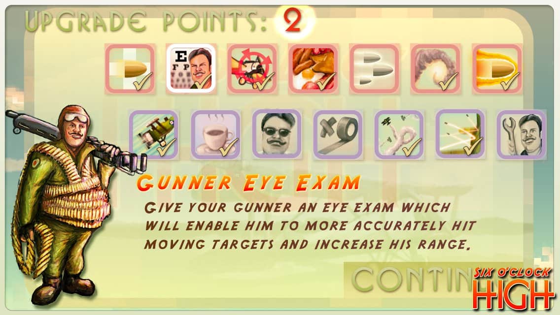 Altı O'Clock Yüksek - geçmiş yüzyıla ait uçakları kontrol edeceğiniz bir android oyunu. Kolay anlaşılır kontrol, canlı grafikler ve heyecan verici hava savaşları birçok kişinin hoşuna gidecek. Düşman uçaklarını yok edin, para toplayın, uçağınızı geliştirin ve yeniden savaşa girin.