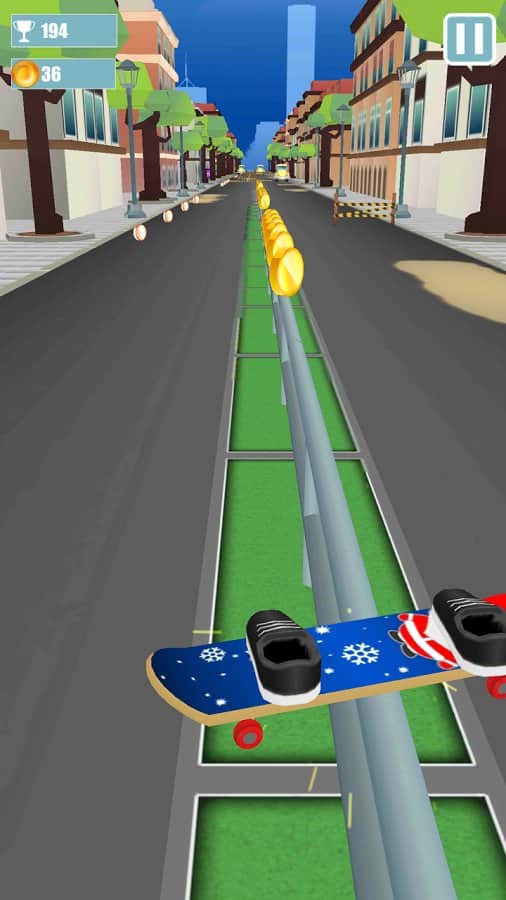 Kaykay Sörf - Android için bir oyun, burada kaykayınızı kontrol altına almanız gerekiyor. Bu oyunda, kaykayınızı yönetmek için iki parmağınızı kullanacaksınız. Parmağınız tahtada olduğu sürece sonsuz bir araç ve engel akışında manevra yapabileceksiniz, zıplamak için parmaklarınızı tahtadan çekmeniz yeterli. Canlı yollarda yolunuzu açın ve engelleri ve su birikintilerini aşın, ayrıca yeni şık tahtalar satın alabileceğiniz altın paraları toplamayı unutmayın. Bu oyunu oynayın ve mükemmel tepki sürenizi ve hızınızı test edin.