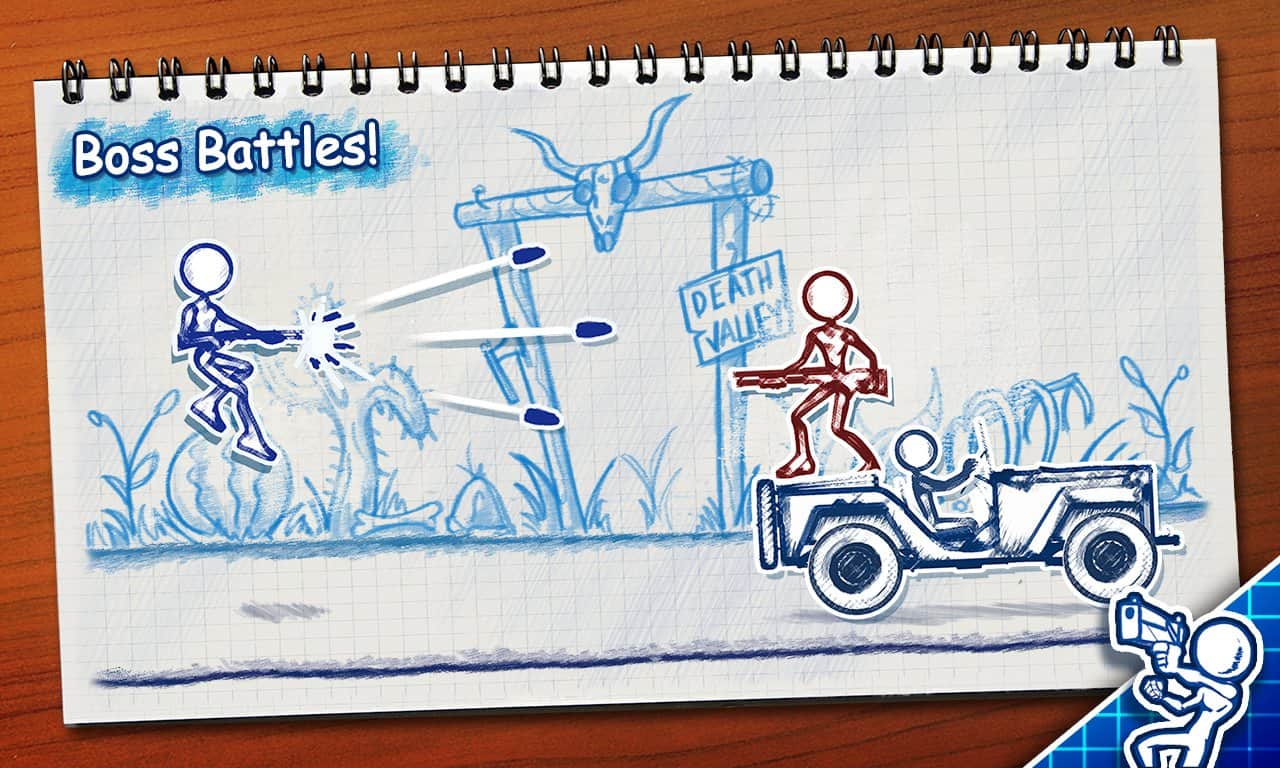 Sketchman - Android için bir oyun, çizgi grafikleriyle dolu ve bu oyunda zıplamanız, çift zıplamanız ve düşman ordularından yolunuzu açmanız gerekiyor. Sizin için birçok silah ve çeşitli görevler mevcut, bu görevleri tamamladığınızda bonuslar kazanacaksınız.