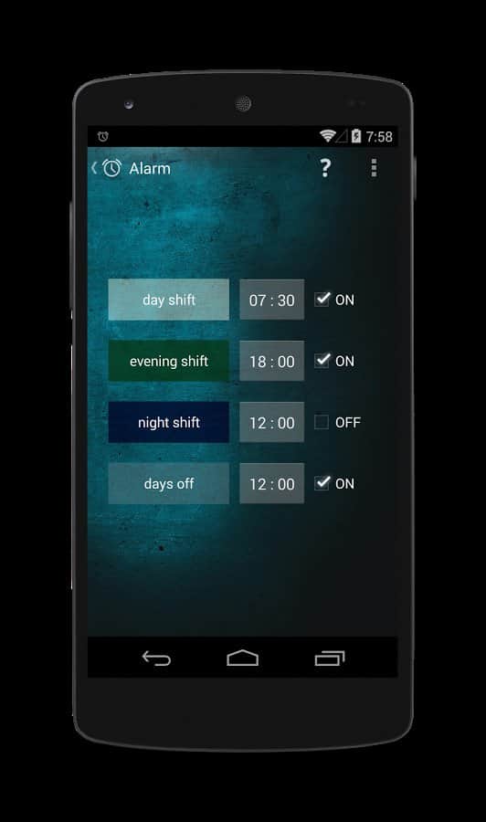 Kaydırmalı Grafik (Shift Work Schedule) – kaydırmalı çalışma programına göre vardiya hesaplama uygulaması. Bu uygulamayı Android akıllı telefonunuza indirip kurun, hazır bir program seçin ve vardiya hesaplamasına başlamak için tarihi işaretleyin – hepsi çok basit! Uygulama rahatsız edici reklamlar içermez ve 10 farklı programın yanı sıra kullanım kolaylığı için gerekli ayarların bir dizi ile birlikte gelir!