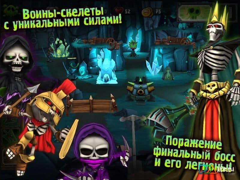 Kafatası Efsaneleri - İki oyun türünün karıştığı fena olmayan bir android oyunu; kule savunması ve nişan oyunu. Savunmanızı kulede alacak ve çeşitli canavarların dalgalarına karşı koymaya hazırlanacaksınız. Oyundaki en ilginç şey ok atışının fiziği. Nefesinizi ve okun uçuş yolunu dikkate alır. Oyunda iyi bir 3D grafik var.