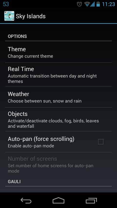 Sky Islands Ücretsiz - Gauli geliştiricisinden Android cihazlar için çılgın canlı duvar kağıtları, fantezi ve her türlü olağanüstü şeyi sevenler için. Sizin için, ağaçlar, kuşlar, hava koşulları ve daha birçok şeyle dolu yüzen adalar var, sadece girip ayarlarda belirtmeniz yeter. Gün ve gece değişimi otomatik olarak gerçekleşir. Harika görünüyorlar!