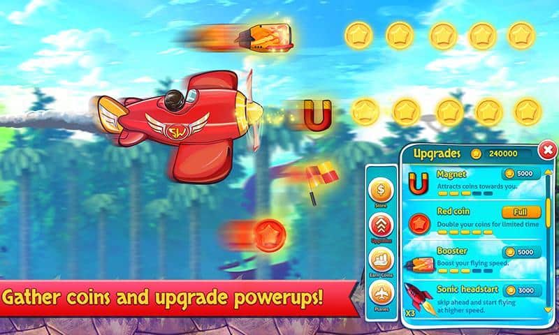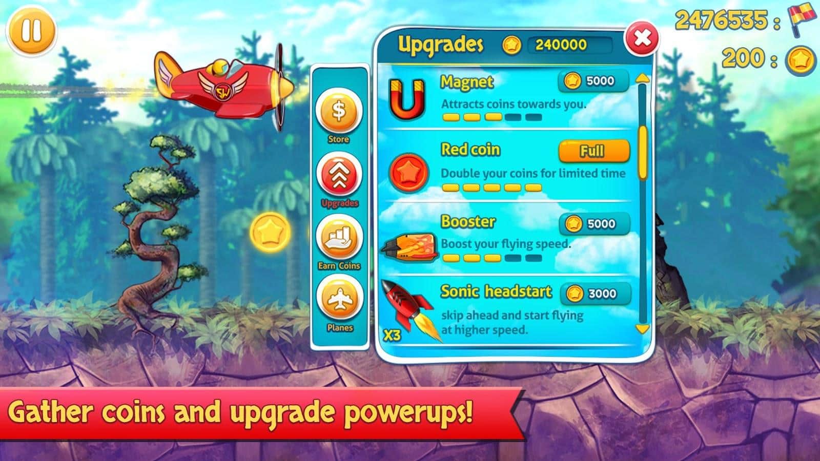 Oyun, sonsuz bir oyun deneyimine sahip yatay koşu oyunları türüne aittir ve bu tür projelerde zorunlu olan madeni paraların toplanması gerekmektedir. Bu paraları, uçuş aracınızı yükseltmek ve son derece faydalı bonuslar satın almak için harcamanız şart, aksi takdirde çok ileri gidemeyeceksiniz. En küçük bir hata veya bir saniyelik gecikme, pilotumuzun hayatı için ölümcül olacaktır.