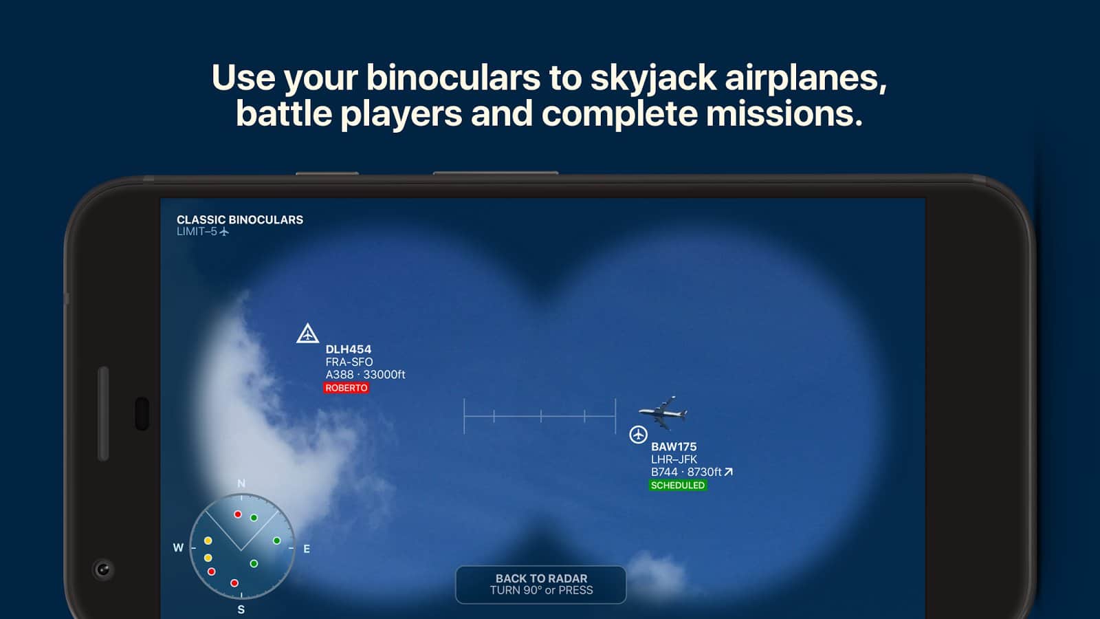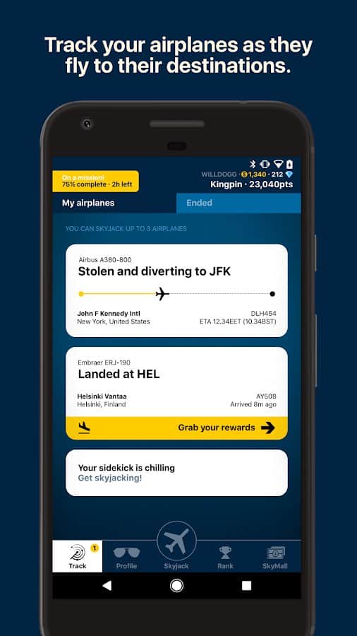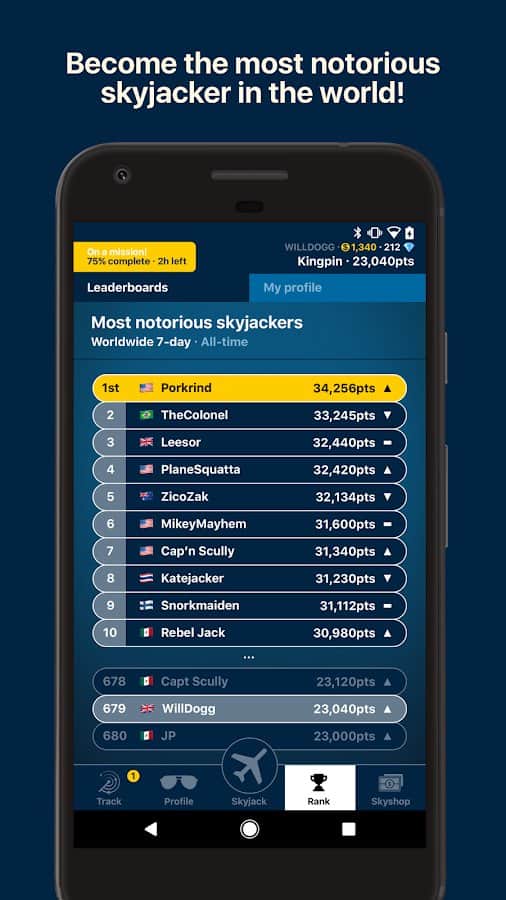 Skyjacker – Gökyüzünün Sahipleriyiz – Android için heyecan verici bir oyun, burada benzersiz bir uçak avına başlayacaksınız. Bu oyunda, çeşitli uygulamaları kullanarak gerçek uçakların uçuşlarını takip edebilir ve koleksiyonunuzu zenginleştirebilirsiniz. Gerçek zamanlı modda uçakları saldırın ve toplayın ve devasa koleksiyonunuzu oluşturun. Uçaklarınızı rakiplerden korumak için oyunun sunduğu anti-radarlar ve diğer modern ekipmanları kullanmanız gerekecek. Dünyanın farklı köşelerinde yeni havalimanları açın ve bu oyunda harika sonuçlar elde edin. Oyunda toplamda 600 uçak ve 7000 havalimanı sunulmaktadır.