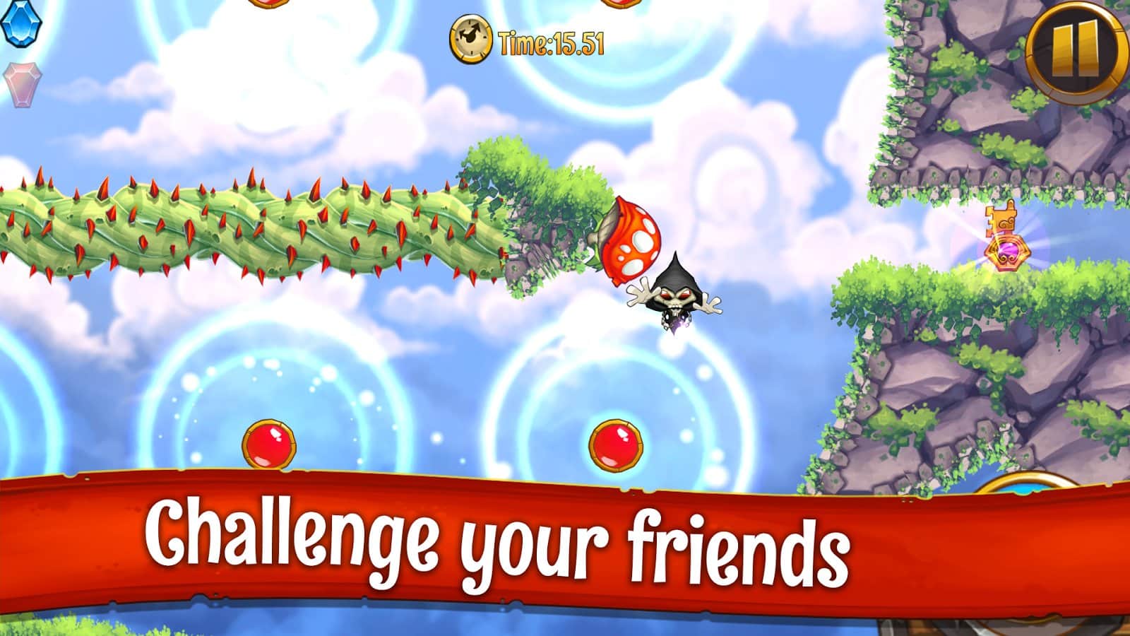 SkyJumper - gizemler, tuzaklar ve çeşitli zorluklarla dolu benzersiz bir dünyayı keşfedin. Seviyede mümkün olduğunca çok kristal toplaması gereken bilinmeyen bir varlık olarak oynuyorsunuz. Lokasyonlar boyunca, inişinizi amorti eden ve aynı zamanda sizi iten mantarları kullanarak hareket ediyorsunuz, bu da size ilerlemenizde yardımcı oluyor. Mantarların yanı sıra, etrafında dönebildiğiniz kürelerle de karşılaşıyorsunuz. Yolda bombalardan, dikenlerden ve bir anda maceranızı durdurabilecek diğer hain tuzaklardan kaçının. Oyunda keşfetmeniz için 6 farklı dünya ile birlikte 100'den fazla seviye sizi bekliyor. Başarılarınızı her zaman liderlik tablosunda görebilirsiniz.