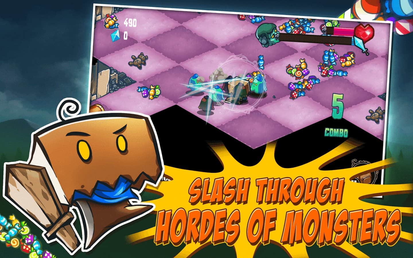 Kesik Kahraman – çeşitli canavarlari sağa sola kesmek zorunda kalacağınız renkli bir arcade slasher. Korkunç hayaletlerin ölümle dolu saldırılarından Halloween bayramını kurtarma şansını yakaladınız. Farklı zindanlarda, eşsiz düşman ve boss türleriyle 48 aksiyon seviyesinden geçeceksiniz. Bu arada, son bossları o kadar da kolay öldüremeyeceksiniz. Karakterinizin düşmanlara çeşitli saldırılar yapabilmesi için ekranda özel çizimler çıkartıyoruz. Şekerler ve tatlılar toplayın - bunlar bayramın ana unsurlarından biri. Loot toplayın, hazine sandıklarını açın, oyuncunun yeteneklerini artıran yeni kostümler giyin.
