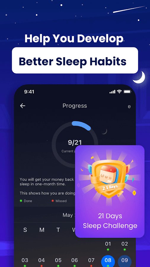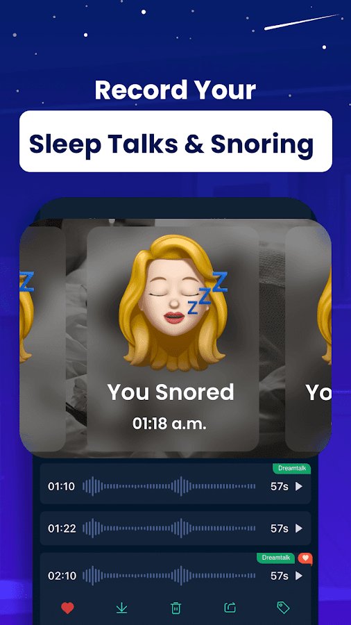 Uyku Monitörü: Uyku İzleyici - uykunuzu takip etmeye ve analiz etmeye yardımcı olan bir uygulama. Uyku evrelerini kaydeder, gece seslerini (örneğin, horlama veya rüya konuşmaları) kaydeder ve hızlı bir şekilde uykuya dalmanız için sakinleştirici melodiler sunar. Akıllı alarm, sabah yumuşak bir şekilde uyanmanızı sağlar ve istatistikler ile öneriler, uyku alışkanlıklarınızı geliştirmenize yardımcı olur.