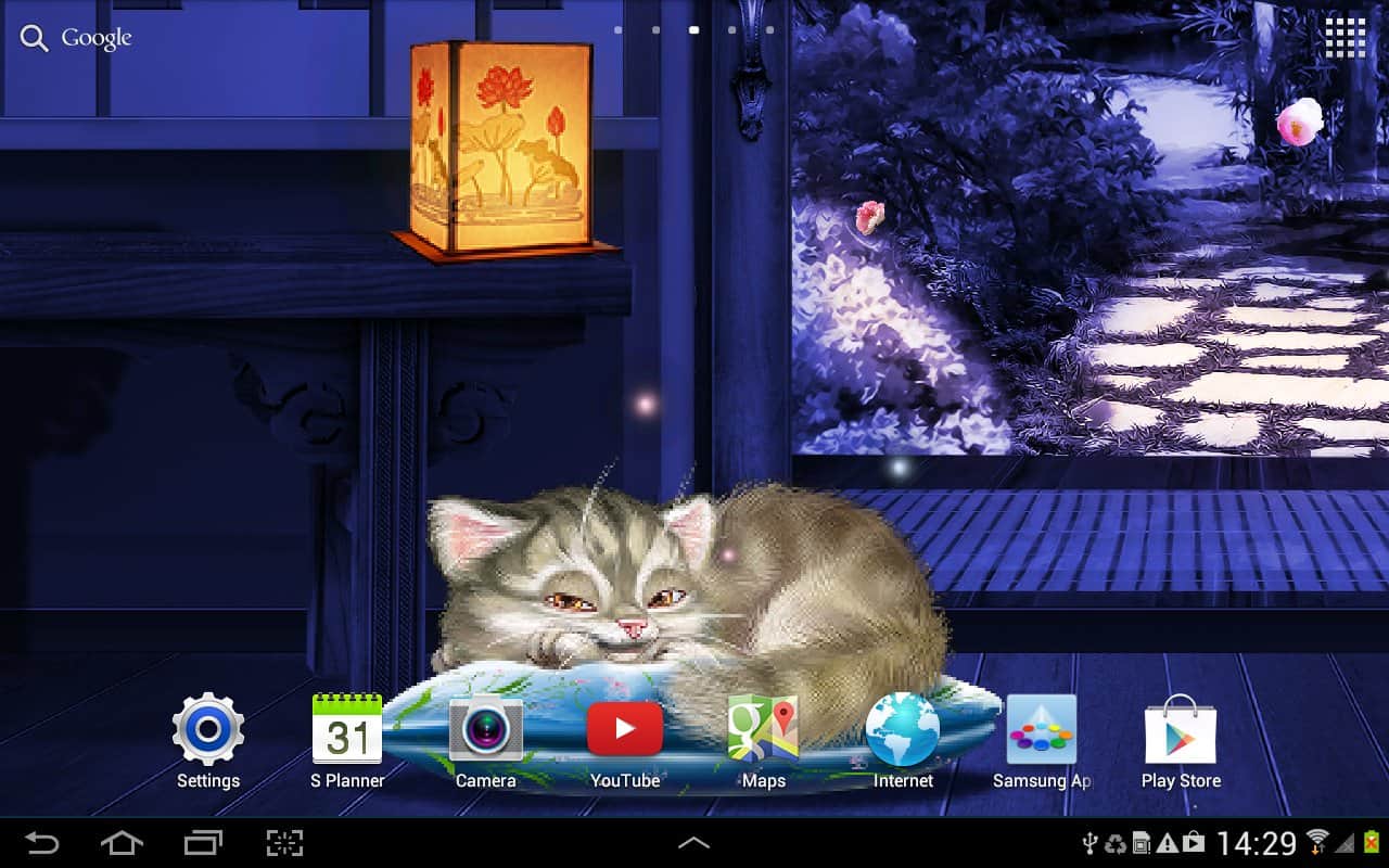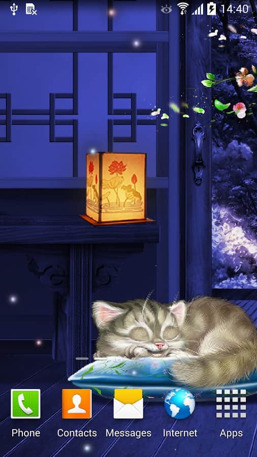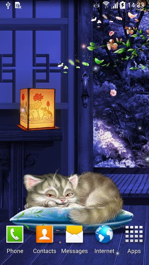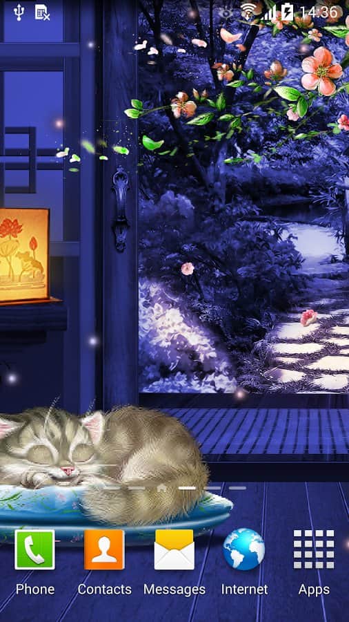 Uyuyan Kedi Canlı Duvar Kağıdı HD – eğer kedileri seviyorsanız ve onların sevimli bir şekilde uyumalarını sürekli olarak izliyorsanız, bu canlı duvar kağıtları sizin için. Android platformunda telefonunuza veya tabletinize bu duvar kağıtlarını yüklediğinizde, ekranınıza her dokunduğunuzda uyanan, rahatça kendi yuvasında yatan bir uyuyan kediye sahip olacaksınız. Bu duvar kağıtlarının arka planı, düşen kiraz yaprakları, animasyonlu ateş böcekleri ve fenerlerle Japon tarzında yapılmıştır. Duvar kağıtları paralaks etkisi ve akıcı animasyon sunmaktadır. Duvar kağıtlarınızı isteğinize göre ayarlayın. Duvar kağıtları ayrıca düşük pil tüketimi ile sizi mutlu edecektir.