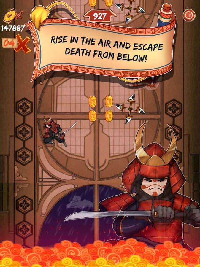 Dilimle ve Yüksel – Kontrolünü elinize alın samurayın, mistik kulede daha yükseklere çıkarken mümkün olduğunca çok düşmanı yok edin. Kahramanımız kuleyi mümkün olan en kısa sürede terk etmek istiyor ve bu yüzden yüksek sıçramalar yapıyor, ona bu konuda yardımcı olun. Sıçrama için doğru rotayı seçin ve telefonunuzun veya tabletinizin ekranına zamanında dokunun. Yolunuzdaki sayısız tuzak ve engeli aşın ve her köşede sizi bekleyen düşmanlarla mücadeleye girin. Yol boyunca, sayısız bonus ve güçlendirici toplamayı unutmayın ve benzersiz yeteneklere sahip yeni samurayların kilidini açın.