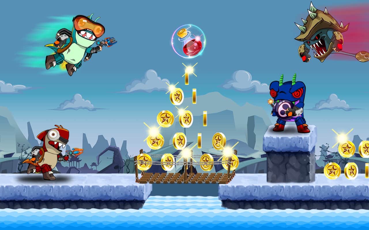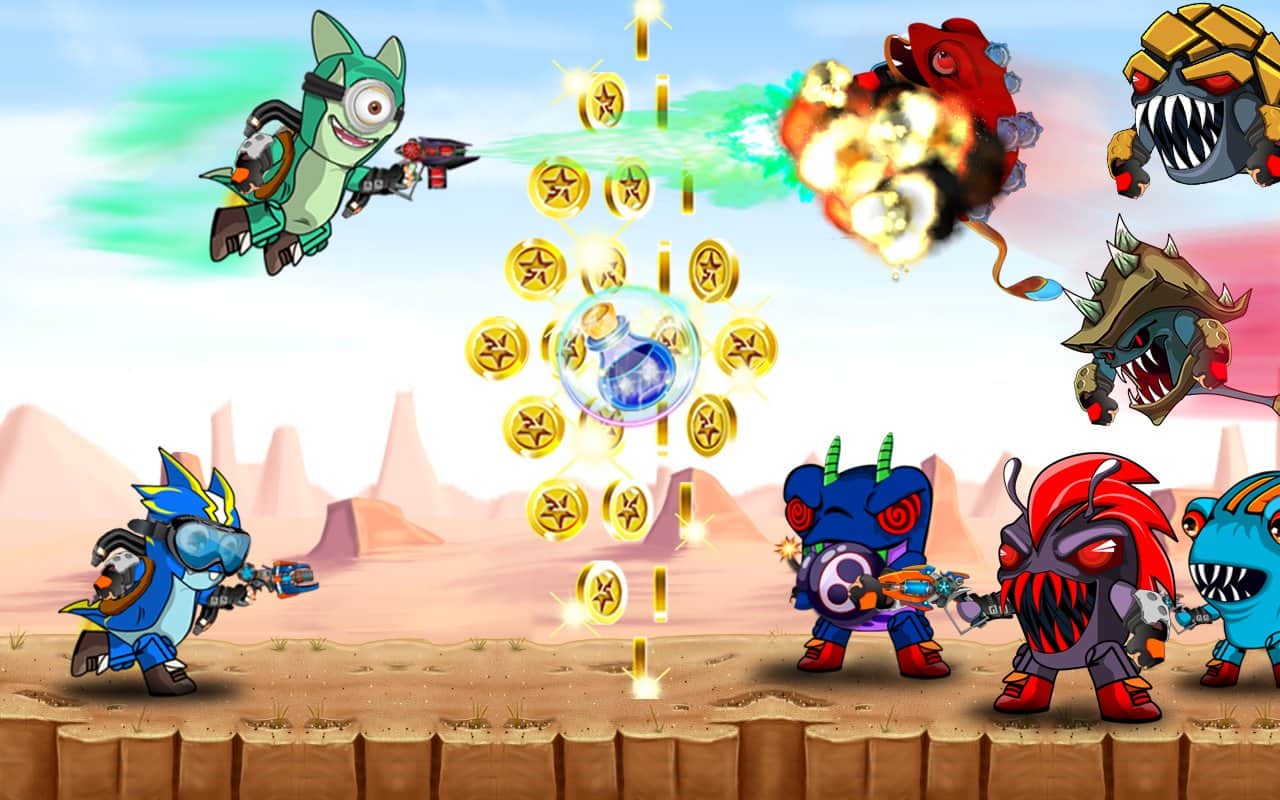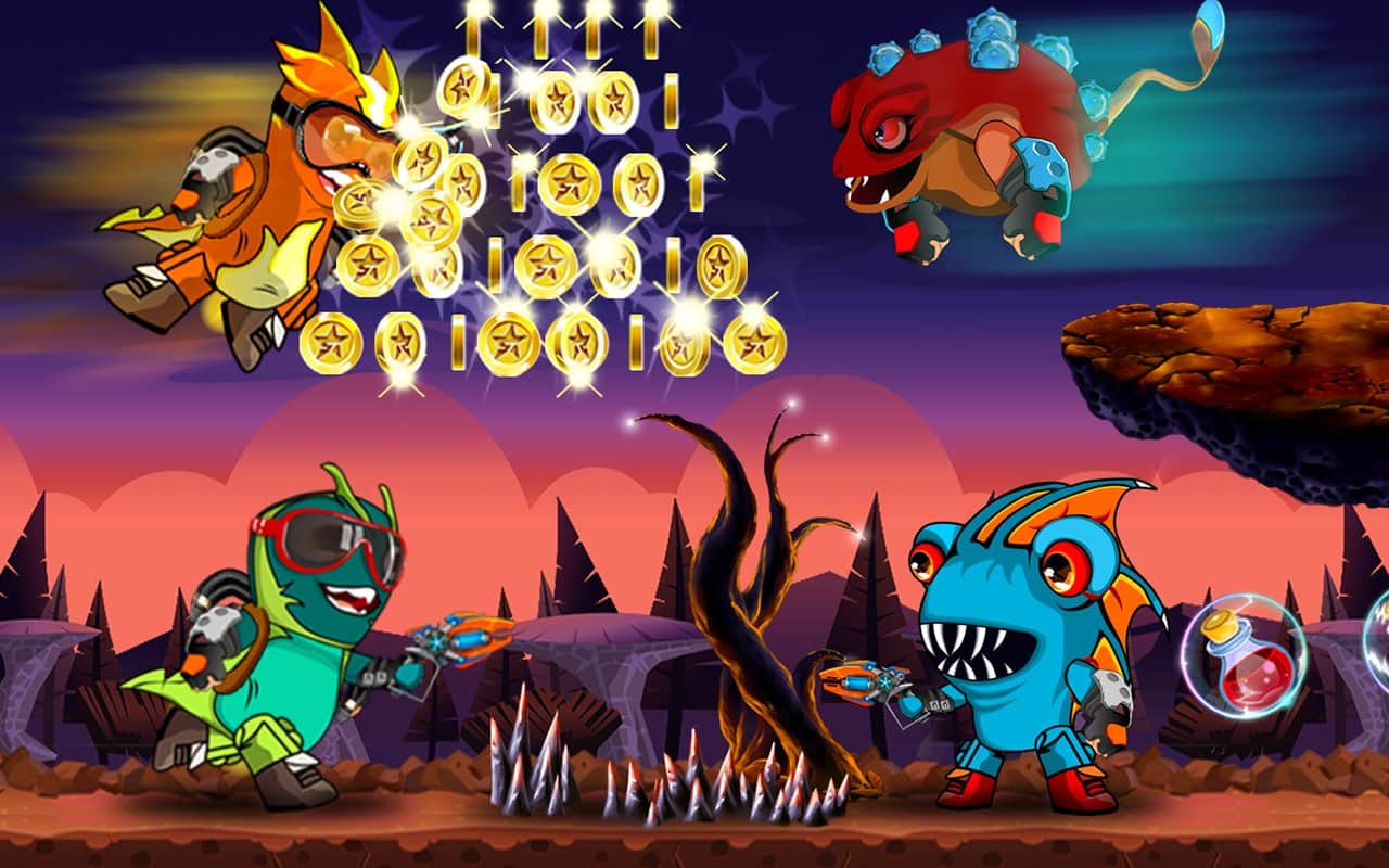 Salyangozlar Jetpack Savaşı Dünyası – cesur kahramanları kontrol altına alın, dünyalarını canavarlardan korumaya karar verdiler. Canavarlar her taraftan saldırıyor, bu yüzden bir blaster alın ve onları yok edin, böylece ele geçirme ve kazanma şansı bulamasınlar. Güzel ve çeşitli dünyalarda hareket edin ve bu arada oyundaki tüm kahramanları açmanıza yardımcı olacak paraları toplamayı unutmayın. Ayrıca yolunuzda birçok bonus ve güçlendirme ile karşılaşacaksınız, bunları kullanın ve kahramanınızı yenilmez hale getirin. Bu oyunda boş zamanınızı eğlenceli bir şekilde değerlendirin ve heyecan verici savaşlar ve kahraman için iyileştirmelerle keyfini çıkarın.