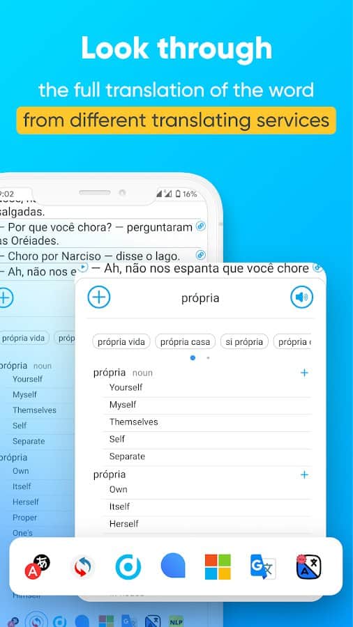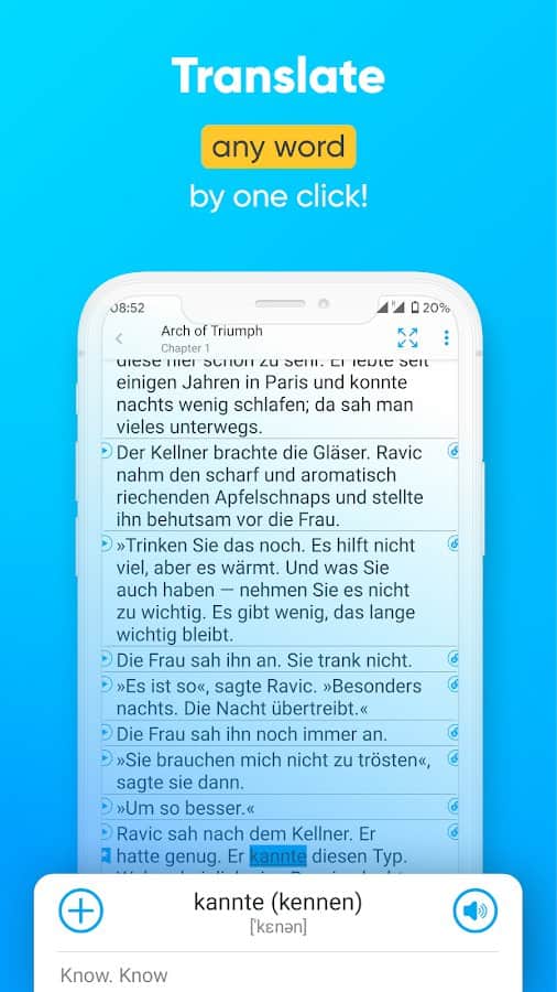Akıllı Kitap - Kitapların paralel çevirisi - Herkes için eğlenceli bir öğrenme yöntemi olan tanıdık bir dili kolay ve rahat bir şekilde öğrenin! İngilizce ilginç bir kitap seçin ve kelimeleri veya tüm cümleleri gerekli metin parçasına bir dokunuşla çevirerek okumaya başlayın. Ayrıca, belirli kelimeleri cümle bağlamında inceleyebilir, fazla zorlanmadan öğrenebilirsiniz. Bilmediğiniz kelimeleri sözlüğünüze ekleyin ve daha sonra onlara geri dönerek dikkatlice tekrar edin, öğrenin ve gerektiğinde sık sık kullanmak için hazırlanın.