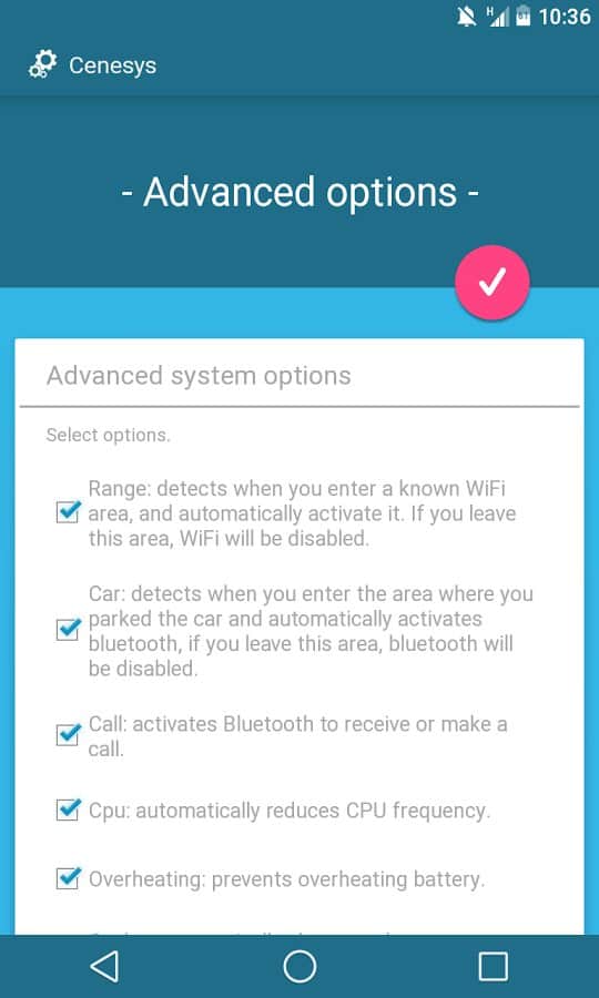 Akıllı Kontrol – cihazınızın bataryasının çalışma optimizasyonu için bir uygulamadır. Akıllı Kontrol ile akü şarj tüketimini yönetebilirsiniz. Bu uygulama, eğer yakın zamanda cihazınızı şarj edemeyeceğiniz bir durumdaysanız oldukça kullanışlıdır. Uygulama, WiFi, GPS, Bluetooth'u açıp kapatmayı; ekran parlaklığı ve işlemci frekansını ayarlamayı ve çok daha fazlasını sunar – karar vermek ve belirlemek size kalmış! Tek bir NOT – programın optimal çalışması için root kullanıcı hakları gereklidir!