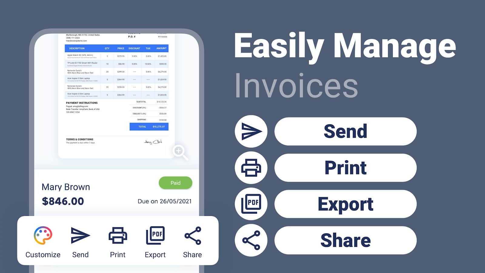 Akıllı Fatura Oluşturucu & Faturalar - Hızla ve profesyonelce net faturalar ve teklifleri, müşterileriniz veya çalışanlarınız için ihtiyaç duyduğunuz şeylere hazırlayın. Uygulamada yerleşik bir jeneratör bulunuyor, bu sayede birkaç dakika içinde çok sayıda fatura oluşturabilirsiniz. Bu jeneratör, faturalama için çeşitli para birimlerini, sayı ve tarih formatlarını destekler. Seçtiğiniz teklifi her zaman PDF formatında kaydedebilir ve daha sonra istediğiniz kişilerle paylaşabilirsiniz. Kendi tekliflerinizi yönetin ve yenilerini oluşturun!