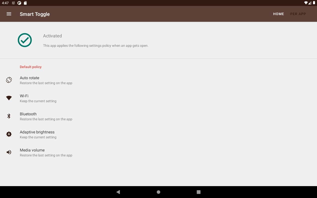 Akıllı Anahtar - telefonunuzdaki ayarlanmış ayarları sonsuz sıfırlamayı unutun, bu tür durumlardan kurtulun ve bu pratik uygulamayı indirin! Geliştiriciler, akıllı telefonun döndürülmesini, Wi-Fi, Bluetooth kategorilerinde veri kaydetmeyi, parlaklık ayarlarını ve ayrıca kütle verileri hacmini sabitlemeyi düşünmüşlerdir. Bazı uygulamalarda sınırlı bir süre sonunda ekranın otomatik olarak kapanmasını devre dışı bırakmayı mutlaka deneyin. Şu anda ihtiyaç duyulmuyor olsa bile, her zaman işe yarayacak bir şeydir.