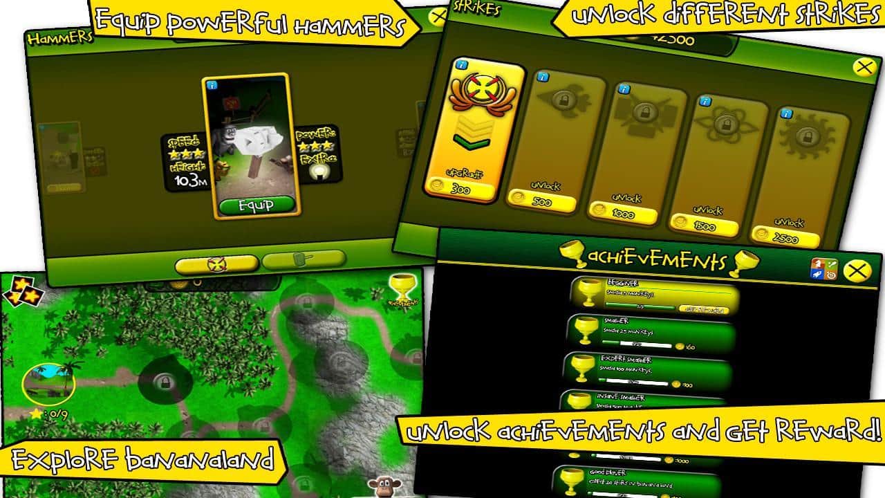 Maymunu Kır - Android için eğlenceli bir arcade oyunu, burada çekiçle vurmanız gerekiyor. Bir eğlenceli maymunu kızdırdılar, onun muzlarla dolu arabasını aldılar. Şimdi kızdı ve büyük bir çekiçle herkese vurmaya başladı, sadece muzlarını geri istiyor. Oyunda on yedi farklı dünyada elli bir seviyeden oluşuyor. Ve İngilizceyi iyi bilenler için seviyeler arasında mizahi hikayelerle eğlendirilecekler.