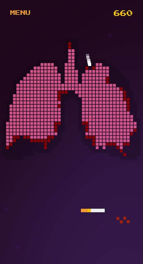 Sigara İçenlerin Cehennemi - basit bir arkanoid oyunu - sağlıklı yaşam kampanyası için oluşturulmuş eğlenceli bir android oyunu. Bu minimalist arkanoid oyununda amacınız sigara ile akciğerleri yok etmek olacak. Sigarayı sağa ve sola hareket ettirin ve akciğerleri oluşturan blokları yok edin. Seviyeleri mümkün olan en hızlı şekilde geçin ve sigara içmenin insan organlarını ne kadar hızlı yok ettiğini gözlemleyin. Bu oyun, insanları sigarayı bırakmaya motive etmek veya onlara başlamamaları için bir sebep vermek amacıyla oluşturulmuştur. Sigara içmek öldürür ve bunu bu oyunda gözlemleyebilirsiniz.