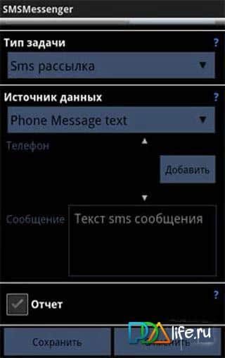 - SMS mesajı raporu, telefonun dahili belleğine veya http, ftp protokolü üzerinden harici bir cihaza kaydedilebilir.