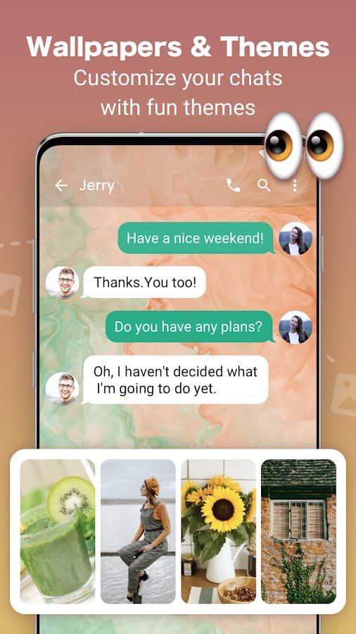 SMS: mesajlaşma - Herhangi bir formatta en hızlı yollarla mesaj alışverişi yapın! Gönderim, yerleştirilmiş çıkartmalar, fotoğraflar, videolar ve ses, GIF ve emojiler ile birlikte SMS ve MMS olarak oynatılacaktır. Karşı tarafları kara listeye alabilir, gelen spam için otomatik filtreyi etkinleştirebilir, özel mesajların şifrelenmesine geçebilir ve arayüzün karanlık modunu etkinleştirebilirsiniz. Kişisel sohbet detaylarının sızdırılmasından korkuyorsanız, bir şifre belirleyebilir veya kişisel kutu simgesinin görüntülenmesini devre dışı bırakabilirsiniz.