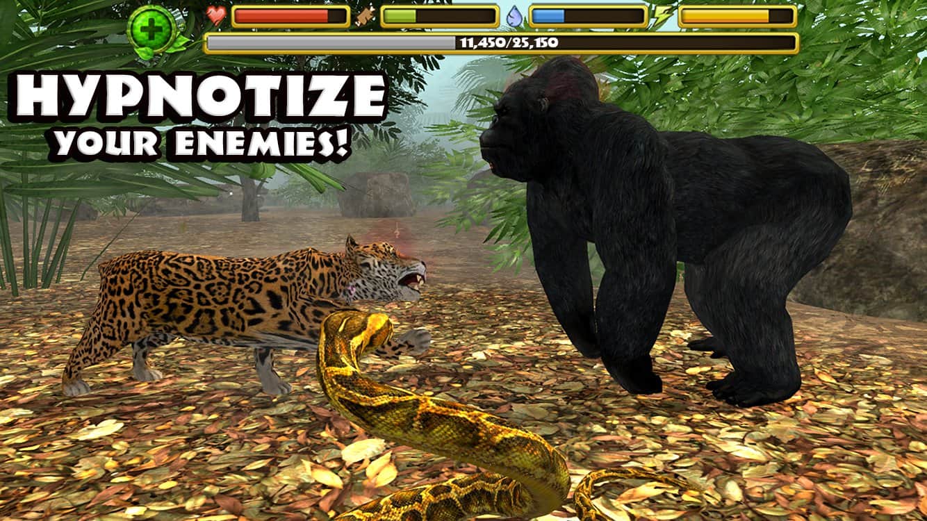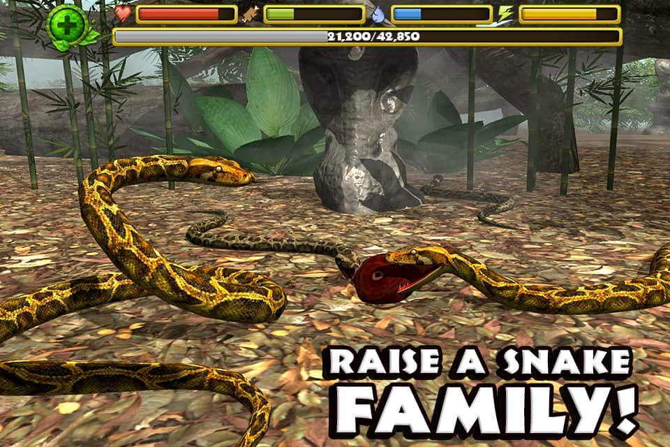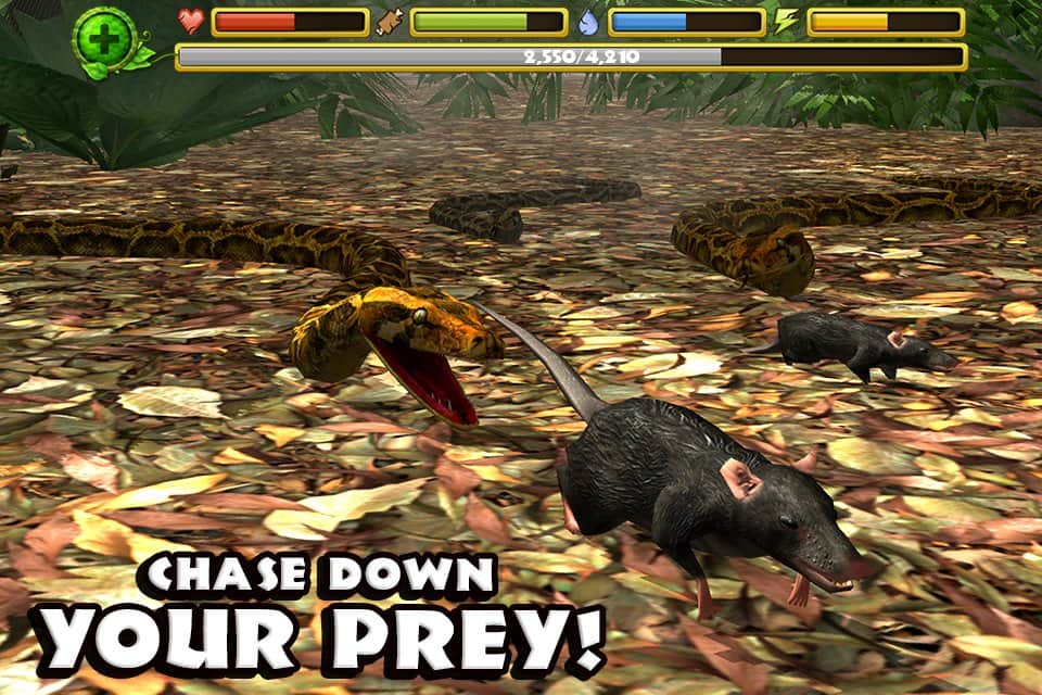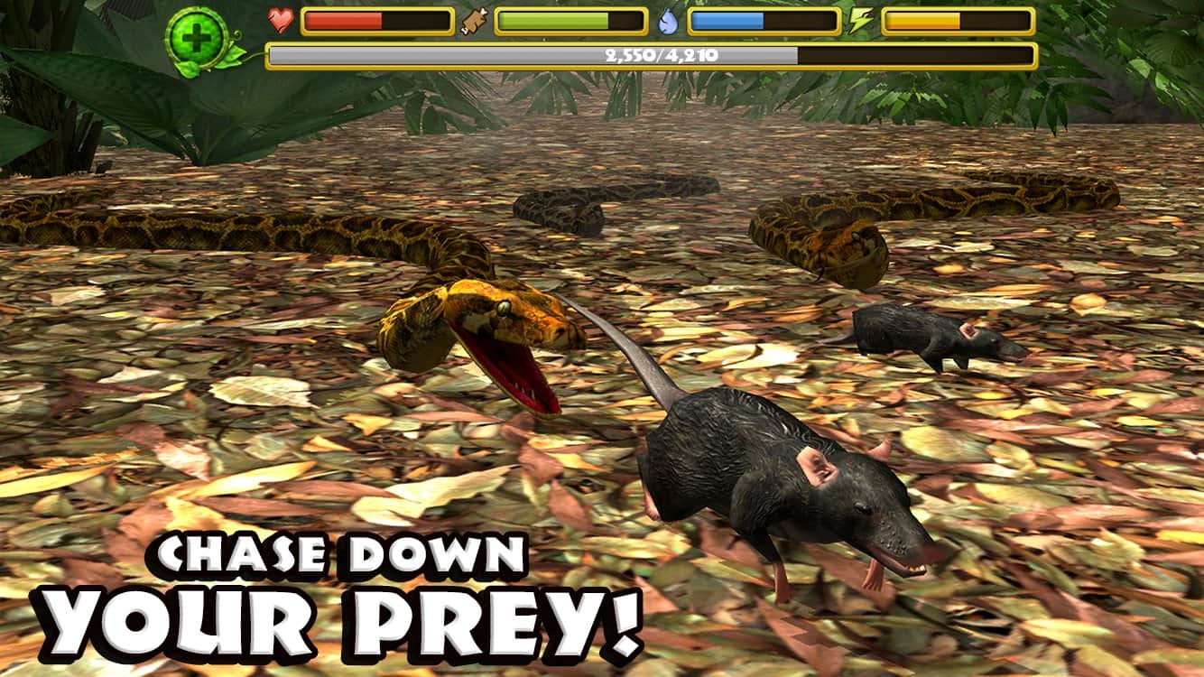 Yılan Simülatörü - Android için gerçekçi bir yılan simülatörü, burada ekstrem orman koşullarında hayatta kalacaksınız. Yemek ararken devasa tropik ormanı keşfedin ve korkunç ve acımasız yırtıcılara, örneğin kaplanlar, timsahlar ve gorillerle hayatta kalmak için savaşın. Kendinize yiyecek arayın ve soyunuzu devam ettirmek için başka bir yılan da bulun.