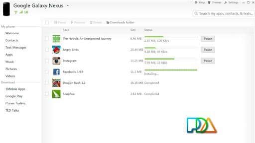 SnapPea - Android cihaz kullanıcıları için bilgisayardan telefona hızlı kablosuz kontrol. Uygulama, USB ve Wi-Fi üzerinden otomatik bağlantı imkanı sunmaktadır. SnapPea ile metin mesajları, rehber, dijital fotoğraflar ve bilgisayarınızda gerekli diğer bilgilerin yedeklerini oluşturabilirsiniz. Ayrıca, iletişim bilgilerini değiştirme ve rehber içeriğini düzenleme, akıllı telefon/tablet ile bilgisayar arasında dosya kopyalama imkanı da vardır.