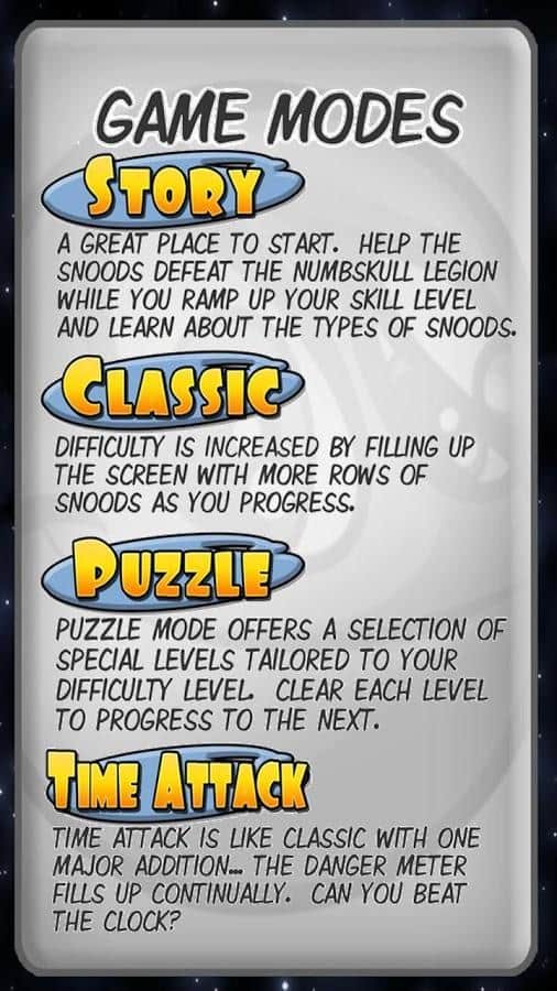 Snood – Android için bir bulmaca oyunu, burada amacınız eğlenceli yüzlerden sıralar oluşturmaktır. Telefonunuzun veya tabletinizin ekranına doğru zamanda dokunun ve yüzü havaya fırlatın, aynı renkten üç nesneyi bir sıraya yerleştirin. Üç nesne bir sıraya geldiğinde kaybolacak ve puan kazanacaksınız. Harika tepki sürenizi ve zekanızı geliştirin ve yüzleri gerekli noktalara atın. Oyunun tüm modlarını deneyin ve liderlik tablolarında ve başarılarında mümkün olduğunca yükseğe çıkın.
