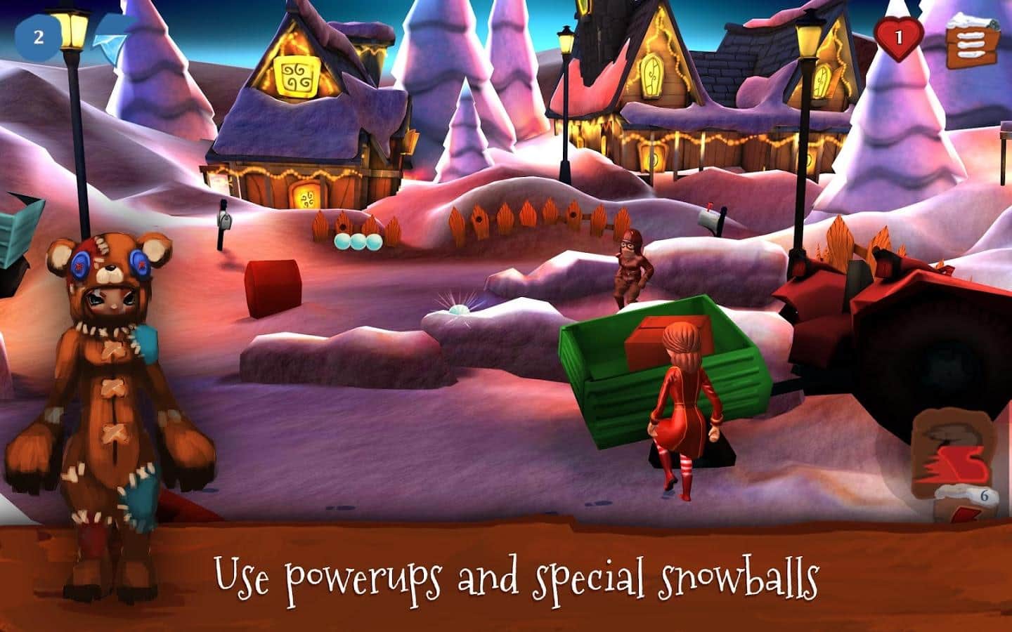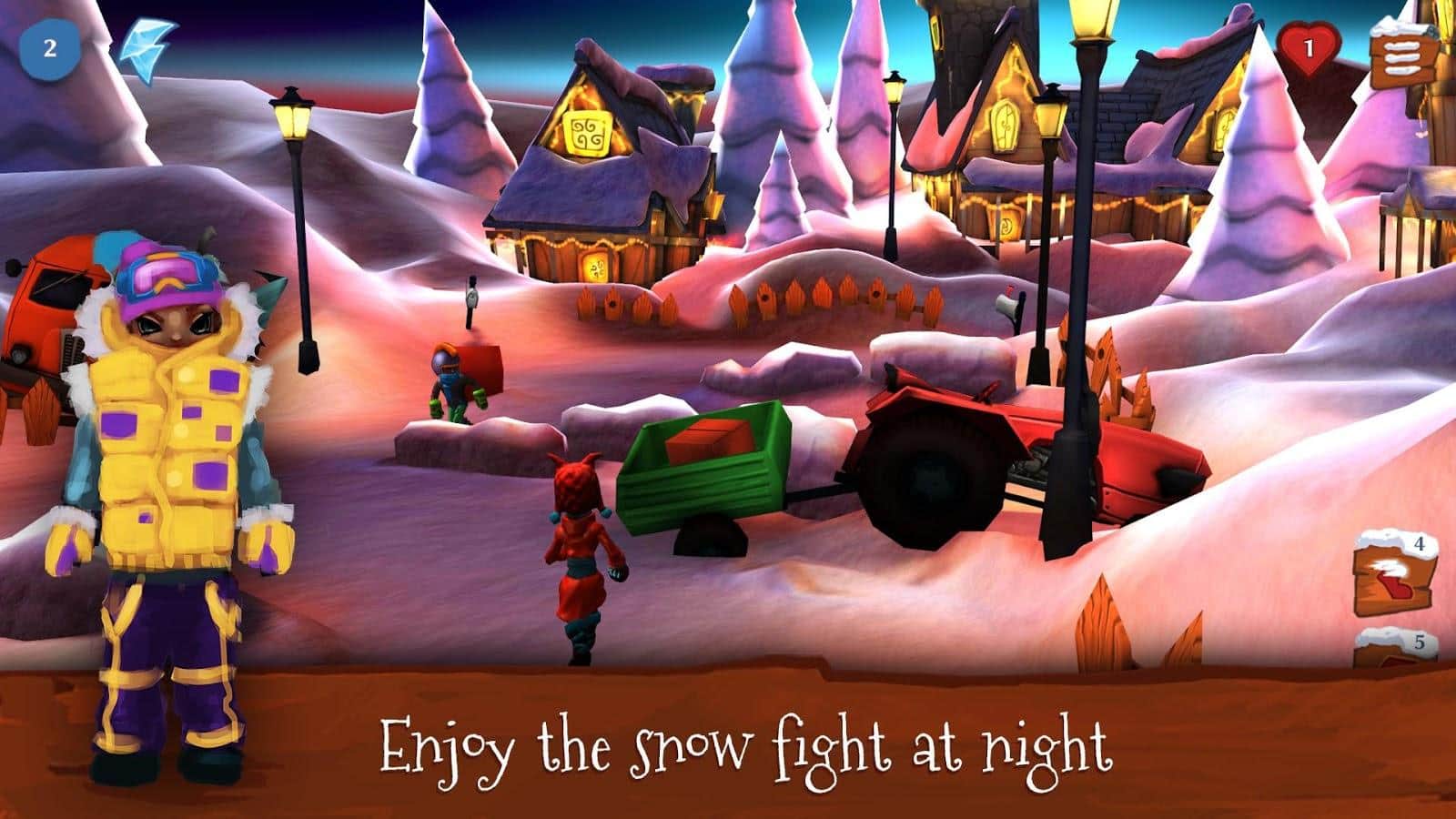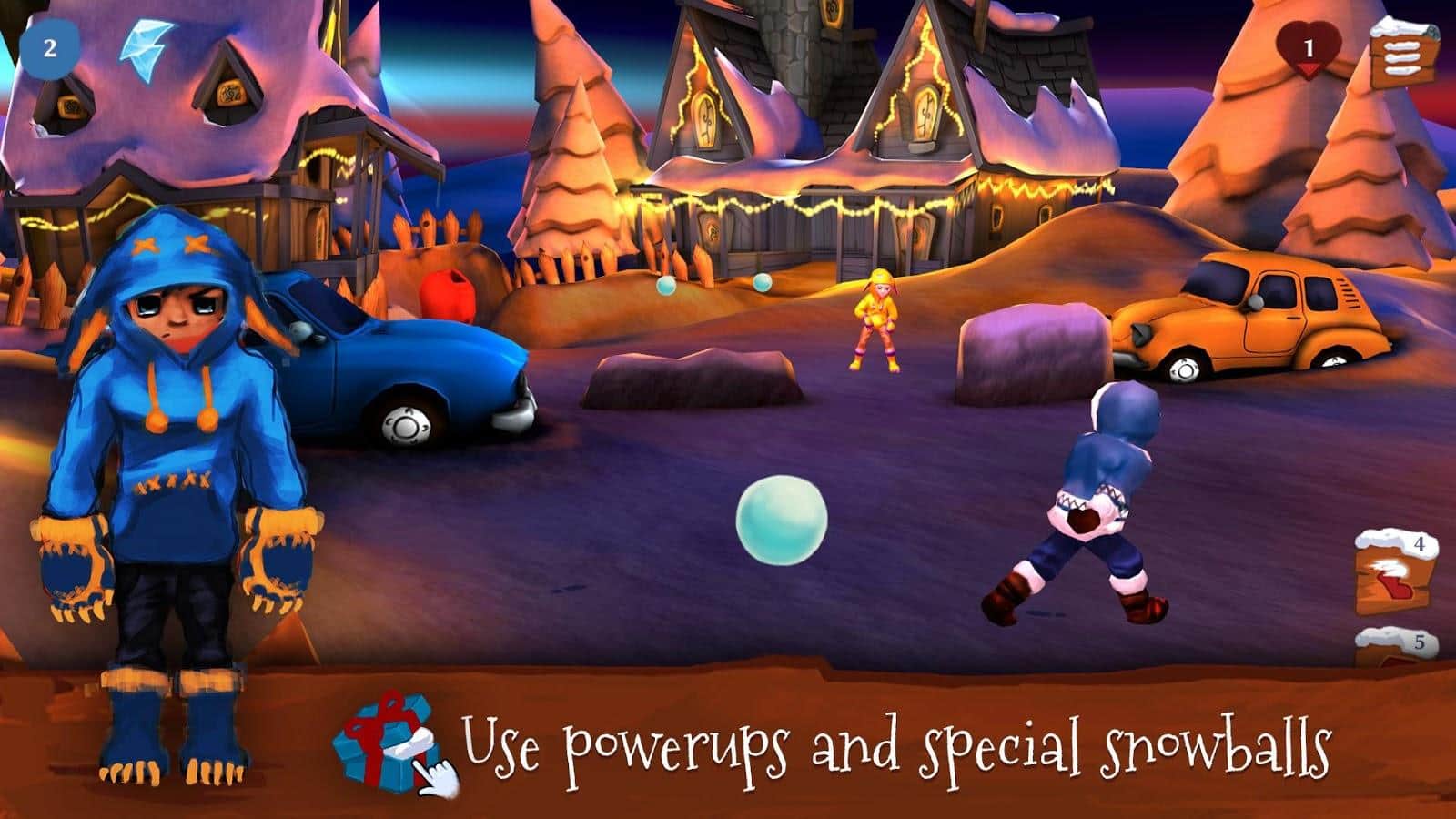 Snowdown Kış Sürümü 3D - karda savaşlara katılacağınız bir Android oyunu. Kendinize bir karakter seçin, onu giydirin ve şehirdeki arkadaşlarınızdan en iyi takımı oluşturun, diğer oyuncularla savaşlara katılmak için. Rakiplerinizi yenin, bonuslar ve özel kardan adamlar kullanarak.
