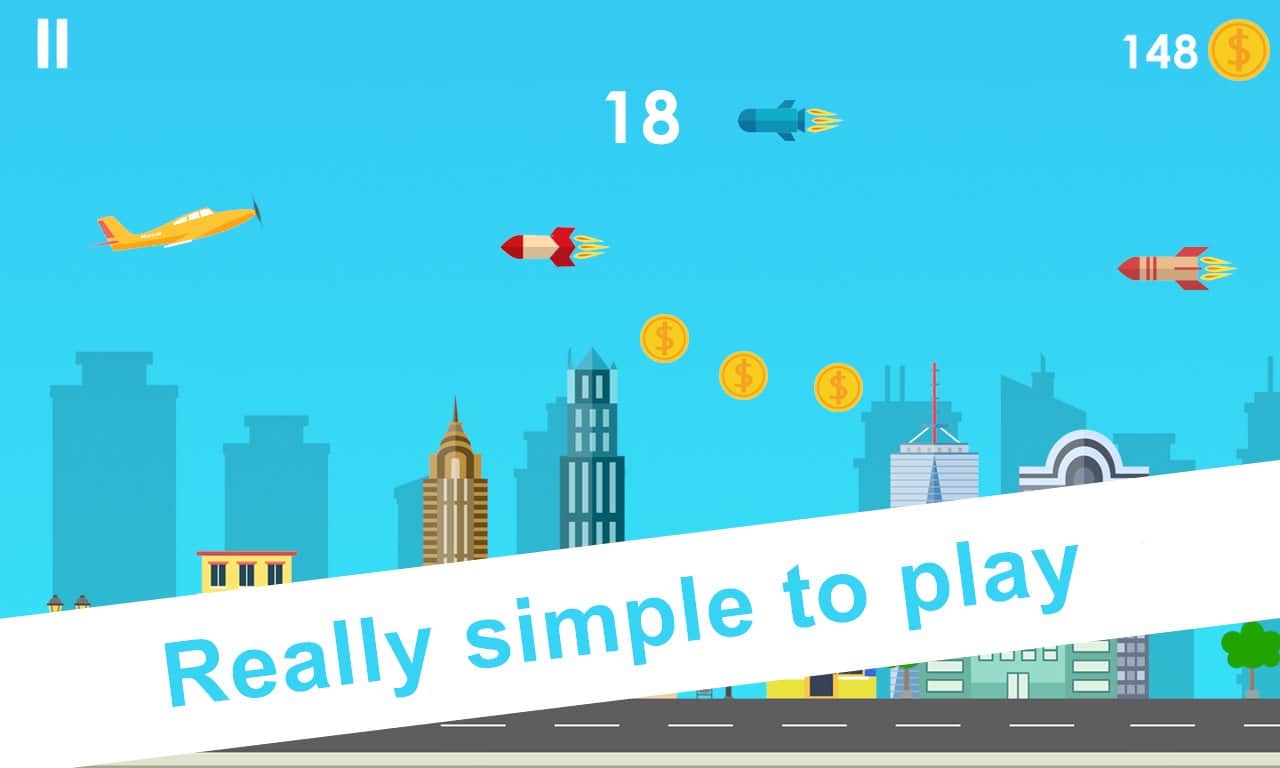 Uçan Jet – hızlı uçağı kontrol edin ve engellerle çarpışmalardan kaçının. Küçük bir uçağı kontrolünüze alın ve oyunun sayısız lokasyonundan geçerken roketler ve diğer engellerle çarpışmaktan kaçının. Bu oyunda en iyi sonucu elde etmek için tüm reflekslerinizi kullanın ve mümkün olan en uzun mesafeyi kat edin. Görevleri tamamlamak o kadar da kolay olmayacak, çünkü düşmanlar sizi vurup uçağınızı roketlerle düşürmeye çalışacak. Ölümden kaçınmak için manevralar yapın ve çeşitli numaralar sergileyin. Yol boyunca altın paraları toplayın ve yeni uçakları ve oyunun lokasyonlarını açın.
