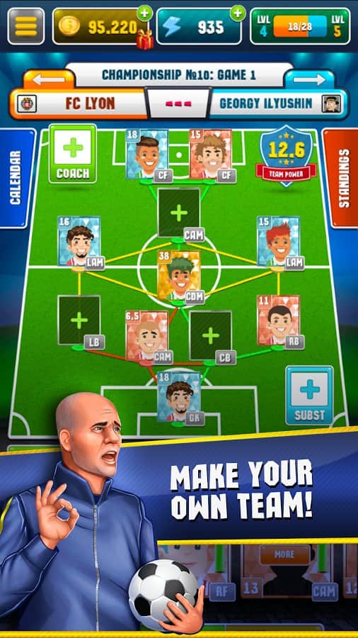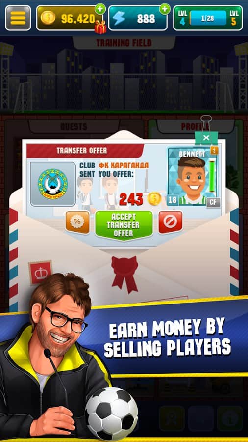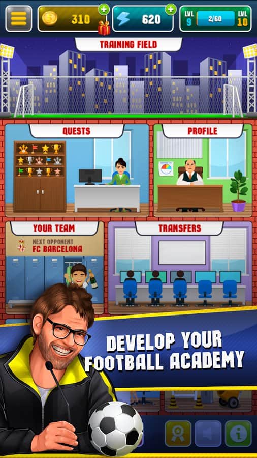 Futbol Akademisi Simülatörü – Android için bir simülatördür, burada futbol akademisini yöneteceksiniz. Bu oyundaki ana amacınız en güçlü futbol takımını oluşturmak ve ligde en iyi sonuçlar için mücadele etmektir. Takımınızı eğitin, bu amaçla en iyi antrenmanları yaparak futbolcularınızı daha dayanıklı ve atletik hale getirin. Yeni oyuncular keşfedin ve bunlarla futbol kulübünüzü güçlendirin. Devasa stadyumlar ve çeşitli kompleksler inşa edin ve maçları kendi sahanızda düzenleyin. Takımınızı sahaya çıkarın ve geliştirdiğiniz taktik ve stratejiyi uygulayın. Tüm heyecan verici görevleri tamamlayın ve arkadaşlarınızla oynayın.