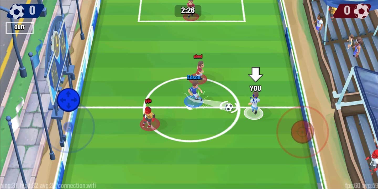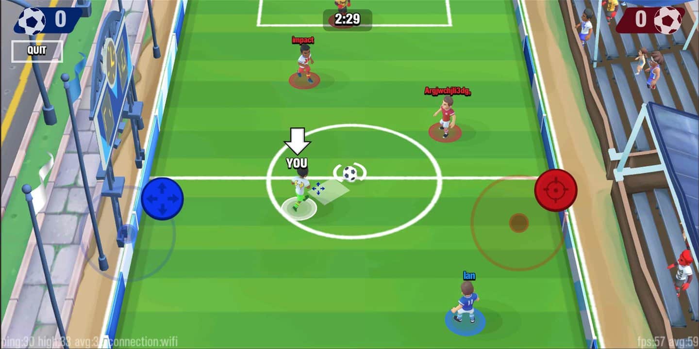 Futbol Savaşı - Çevrimiçi PvP – Android'de oynayabileceğiniz, dünyanın dört bir yanından oyuncularla mücadele edeceğiniz çevrimiçi bir futbol oyunudur. Altı oyuncuya meydan okuyun ve en çok gol atmak için futbolcunuzu yönetin. Futbol stratejinizi geliştirin ve oyunu kazanmanızı sağlayacak mükemmel pasları oluşturun. Arkadaşlarınızla çevrimiçi bir araya gelin ve diğer oyunculara karşı turnuvalara katılın. Bu oyunu boş zamanlarınızda oynayın ve harika sonuçlar elde edin. Oyun, oyunculara joystick ile basit ve anlaşılır bir kontrol sunarak, canlı grafiklerle ve gerçek bir futbol stratejisiyle keyif verecektir.