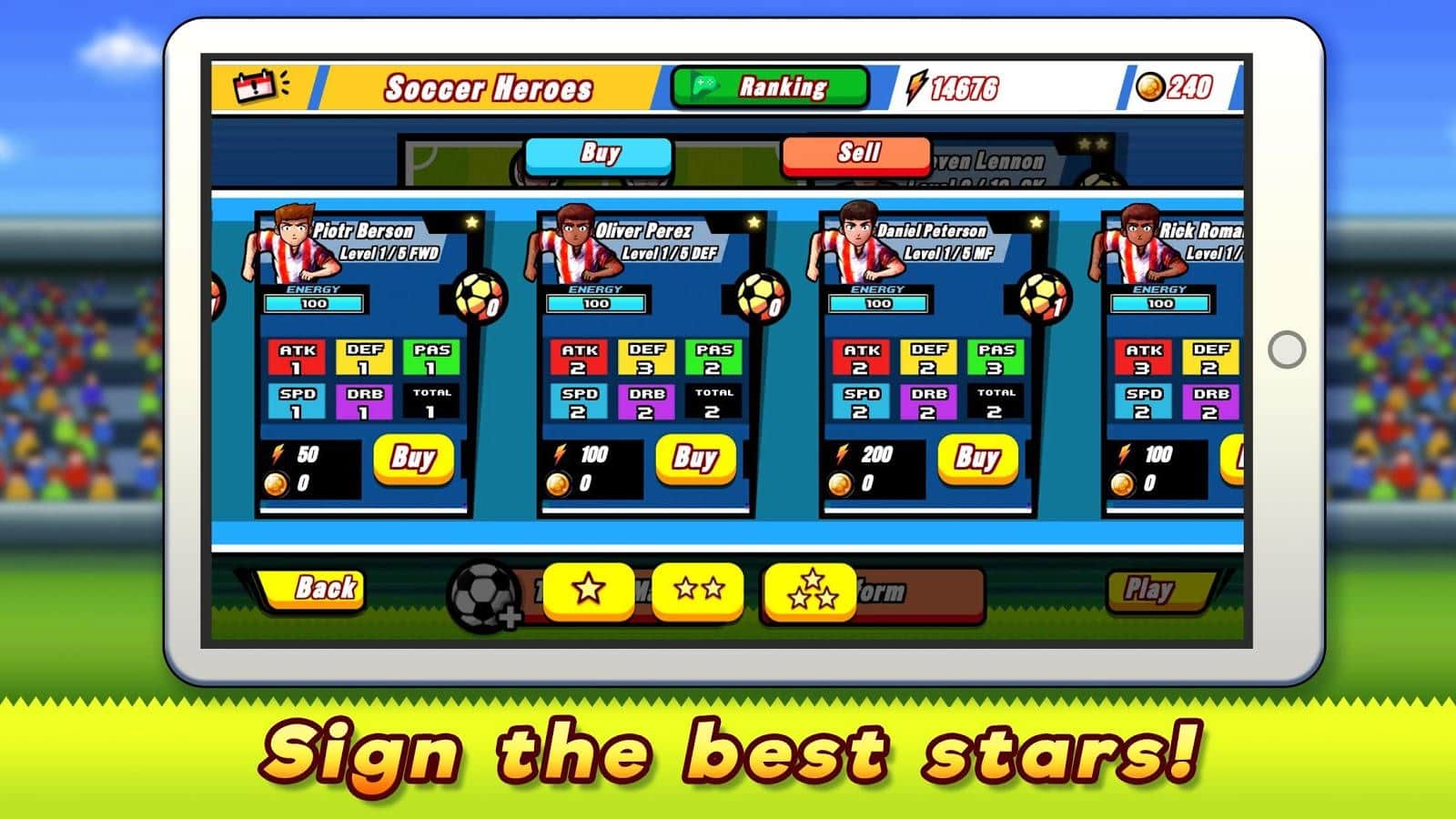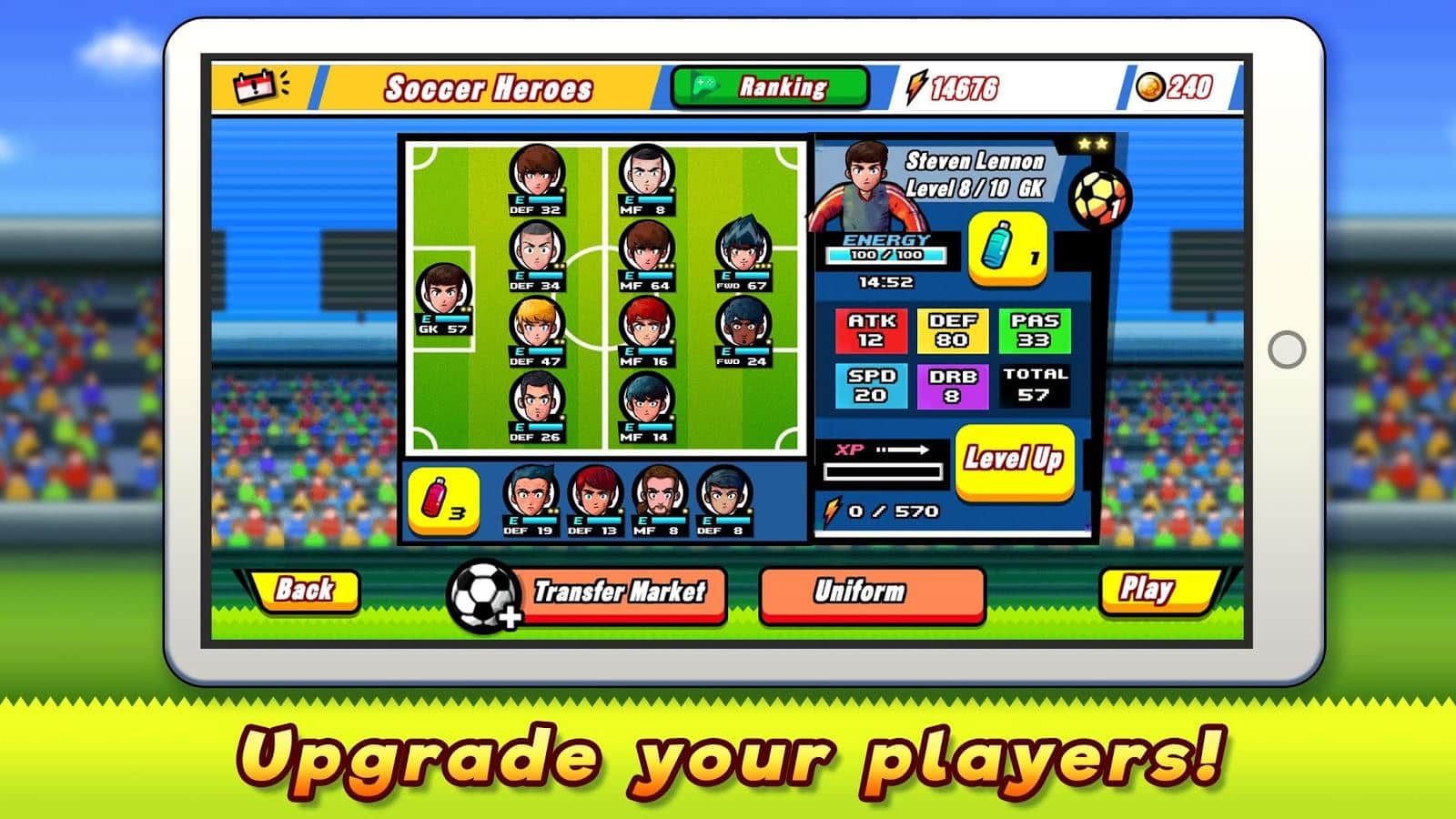 Futbol Kahramanları - Brezilya'ya Yol - Android için eğlenceli bir arcade futbol oyunu. Brezilya'da gerçekleşen dünya şampiyonasına katılacaksınız. Kendi takımınızı oluşturun, oyuncuları yerleştirin ve dünyanın en ünlü kupalarından biri için mücadeleye başlayın. Oyunda her yaştan insanın beğeneceği güzel bir çizgi film grafiği var.
