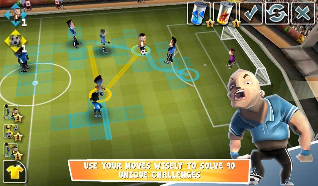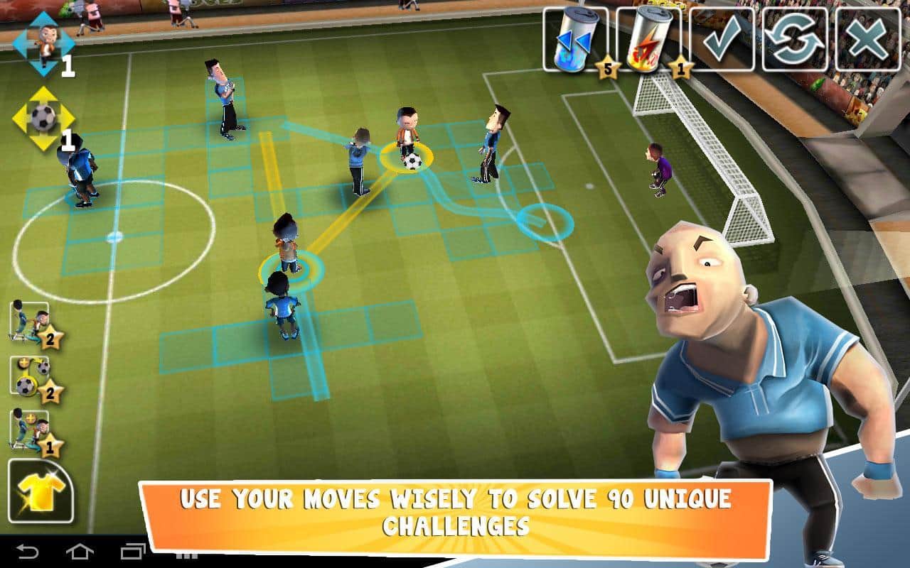 Futbol Hareketleri - futbol temalı bir android oyunu, birden fazla türü birleştiriyor. Bu, sizi uzun süre meşgul edecek bulmaca unsurları içeren taktiksel bir futbol oyunu. Oyunda, rakibinizin kalesine gol atmak için belirli sayıda adım alıyorsunuz. Başlangıçta ekibiniz sadece iki kişiden oluşacak, ancak oyun ilerledikçe tam bir futbol takımına dönüşecek. Maçlarda kazanarak madeni paralar kazanacaksınız ve bunlarla oyuncularınızın yeteneklerini geliştiren çeşitli eşyalar satın alabileceksiniz.