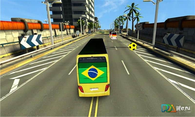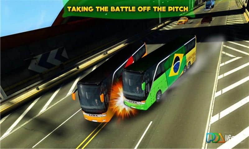 Futbol Takımı Otobüs Savaşı - Brezilya Versiyonu - Windows Phone için futbol temalı yarışlar, dev otobüslerle yarış yapacağınız bir oyun. Favori takımınızın bayrağına sahip bir otobüs seçin ve engelli yarışı başlatın. Yolunuzda ilerlemenizi engelleyecek diğer otobüsler ve karşıdan gelen araçlar olacak. Yol boyunca bonus topları toplayarak otobüsünüzü geliştirebilir, tekerleklerini değiştirebilir ve neon aydınlatma ekleyebilirsiniz.