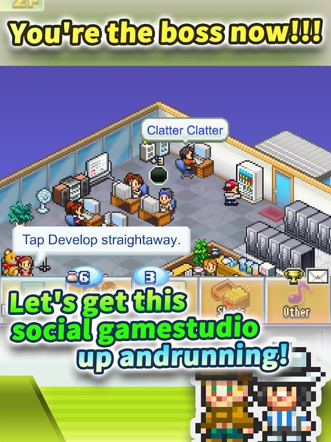 Sosyal Geliştirici Hikayesi - Kairosoft stüdyosundan yeni bir ekonomik simülatör, bu stüdyo projeleriyle tanınmaktadır. Bu sefer, küçük bir oyun geliştirme stüdyosunu yönetmek ve onu bu işte lider konumuna getirmek için çalışacaksınız. Bunun için elbette ki hit bir proje oluşturmanız gerekecek, bu da personel işe almayı, ekipman satın almayı ve daha fazlasını gerektirecektir. Bu sefer Kairosoft, oyunculara diğer oyuncularla online modda oynama imkanı sunarak oyun deneyimini çeşitlendirmeye karar verdi.