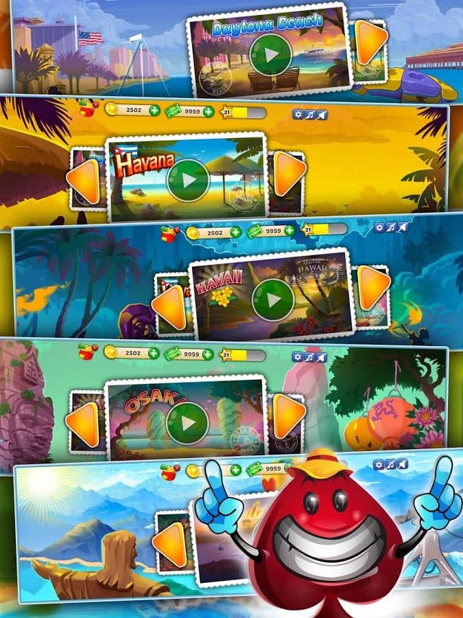 Solitaire Showdown – bu oyunda dünyanın dört bir yanında seyahat edin ve kart destelerini toplayın. Bu oyunda amacınız, oyun kartlarını uygun sırayla dizmek ve değerli ödüller kazanmaktır. Dünyanın birçok köşesinde seyahat edin ve en güçlü oyuncularla yarışarak çeşitli turnuvalara katılın. Dünyanın her noktasında size çeşitli solitaire toplama görevleri sunulacak, tüm yeteneklerinizi kullanarak heyecan verici görevleri tamamlayın. Arkadaşlarınızla oynayın ve liderlik tablosunda en üst sıraya çıkarak derecenizi artırın. Oyunda sizi bekleyen inanılmaz ödüller ve kazanabileceğiniz bonuslar var.