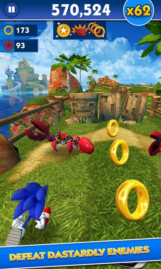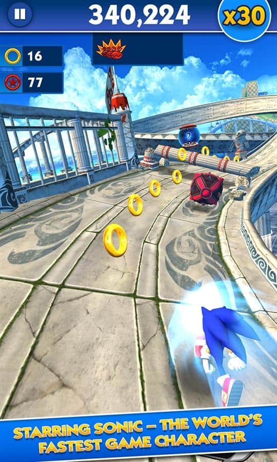 Sonic Dash – dünyadaki en hızlı kirpi ile yöneteceğiniz bir koşucu. Hızlı bir oyunda engellerin etrafında koşun, zıplayın ve dolaşın. Kirpinin inanılmaz yetenekleri, yolculuğunda ona yardımcı olacak ve düşmanlarla savaşıp onları alt etmek için faydalı olacaktır. Ayrıca, oyun boyunca ana karakteri Tails, Knuckles veya Shadow ile değiştirme fırsatınız olacak. Ölümcül altılı lideri Zazz ile destansı savaşlara girin ve tüm yeteneklerinizi kullanarak onu yenin. Kahramanınızı ekstra süper güçlerle donatıp geliştirerek mümkün olduğunca çok halka toplayın.