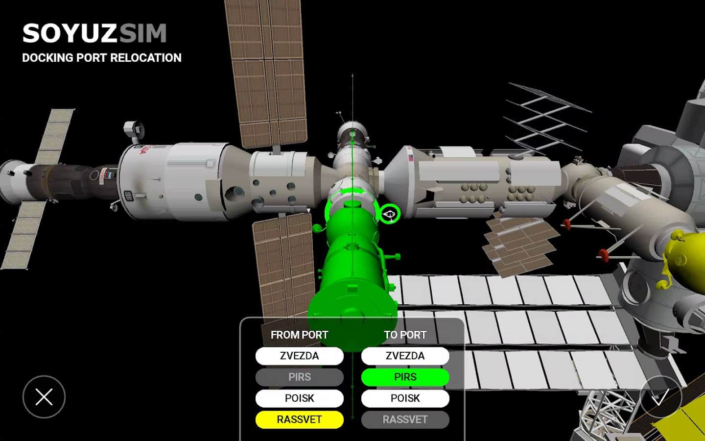 SoyuzSim - Kozmonot gibi antrenman yap – efsanevi "Soyuz" uzay aracını yöneteceğiniz gerçekçi bir simülatör. Bu oyunda, "Soyuz" uzay aracını Uluslararası Uzay İstasyonu'na kenetleme operasyonu sırasında kontrol etme fırsatı bulacaksınız. "Soyuz" uzay aracını elle pilotaj yaparak, onu uzayda santimetre hassasiyetiyle manevra yapabilirsiniz. Tüm görevleri ve oyunun taleplerini yerine getirmeye çalışın, bunun için ihtiyaç duyduğunuz bilgileri içeren kullanıcı kılavuzunu kullanın. Bağlanma işlemini en kısa sürede gerçekleştirmeye çalışın ve tüm gereksinimlere uygun olmasını sağlayın.