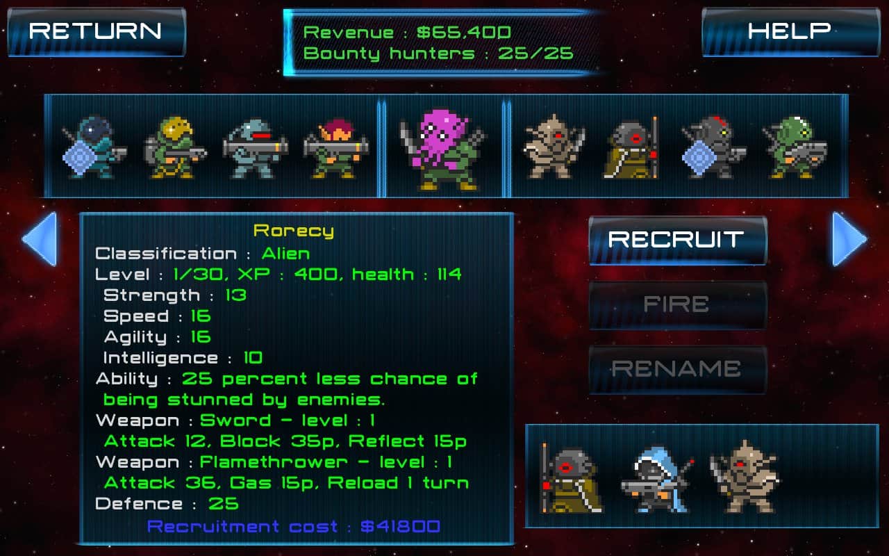 Uzay Avcıları A.Ş. - android için sıralı bir uzay stratejisi, burada tehlikeli kaçakları yakalamanız gerekiyor. Bu oyun piksel grafikleri ile yapılmış olup, siz avcı olacaksınız ve kaçan suçluları yakalayacaksınız. Tüm dünya felaketin eşiğinde, çeteler uzay komutanlığını yok etti, korsanlar galaksiler arası ticaret yollarını ele geçirdi, gezegenler dev lazerlerle yok ediliyor ve çeteleri ve kaçan suçluları durdurabilecek tek kişi sizsiniz. Güçlü silahlarınızı alın ve bu oyunda tüm seviyeleri keşfederek kaçakları yakalayın. Her yeni seviyede farklı kaçaklar ve avcılarla karşılaşacaksınız, bunların farklı özellikleri, sağlıkları ve silahları var.