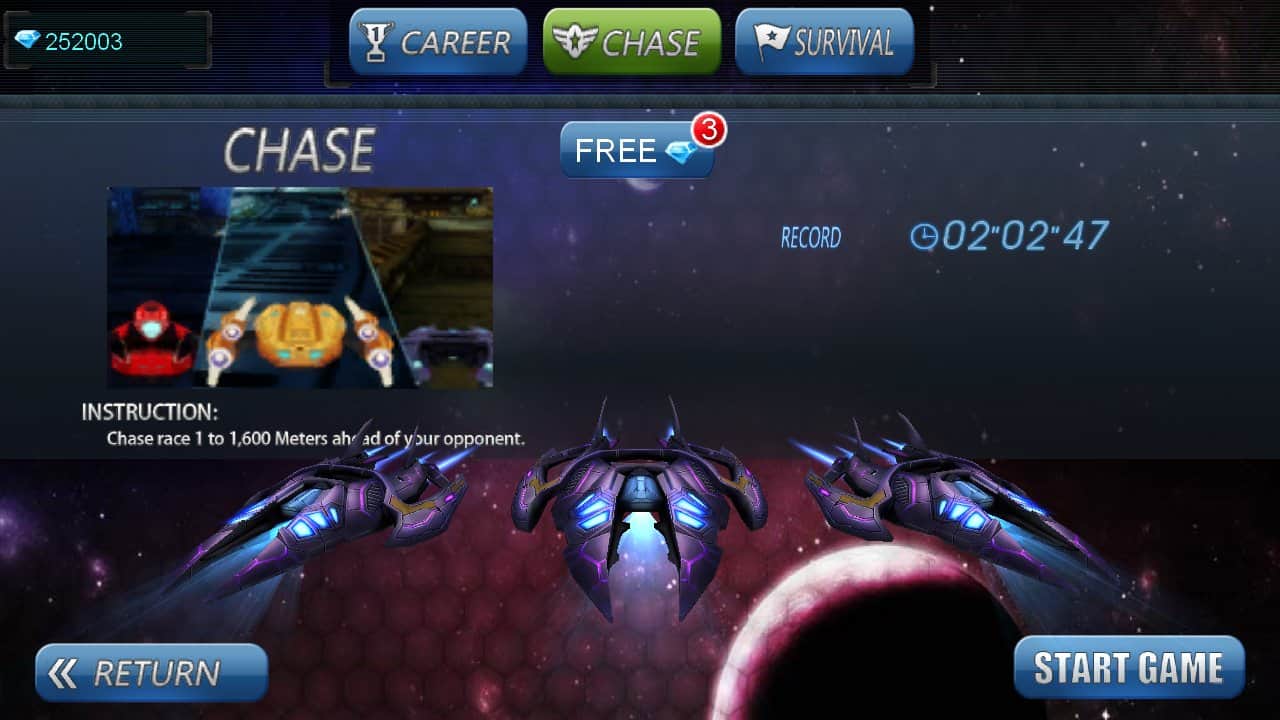 Uzay Yarışı 3D - gelecekteki anti-gravitasyonlu araçlarla yapılan futuristik yarışlar. Farklı pistlerde deli bir hızla ilerliyoruz. Uzay mega kentleri, tuhaf bitkilerin bulunduğu gizemli ormanlar ve hatta uzayda yarışlar. Sürekli zaferler için arabanızı uygun seviyede tutmalısınız, bu nedenle yarışlardan sonra onu geliştirebilir ve modernize edebilirsiniz. Oyunda 3 oyun modu ve 40'tan fazla seviye bulunmaktadır.
