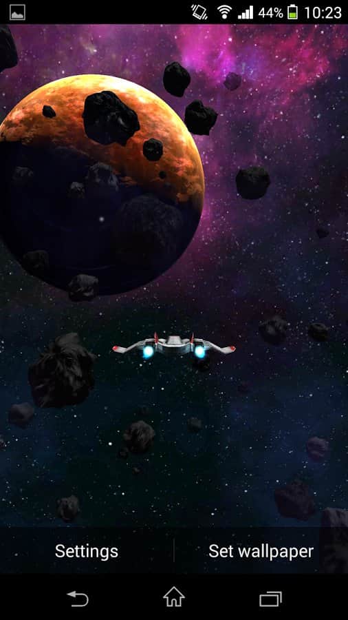 Uzay Seyahati Canlı Duvar Kağıdı - Uzay gemisi kaptanı olmayı hayal ettiniz mi? Hayaliniz gerçek oldu, uzay geminizle sonsuz uzay boşluklarında seyahat edin. Geminiz, önünüzdeki asteroitleri yok etmek için lazer ateşi de açabilir. Harika grafikleri ve görsel tasarımıyla bu duvar kağıtları gerçekten çok güzel görünüyor. Cihazınızın kaynaklarına oldukça talepkar olduklarını belirtmek gerekir, ancak kesinlikle buna değer. O halde neyi bekliyorsunuz, indirin, kurun ve evinizden veya iş yerinizden uzayı keşfetmeye başlayın.