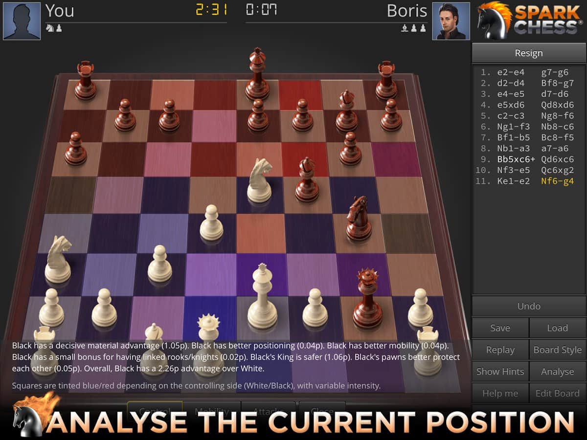 SparkChess HD, Android cihazlar için en iyi ve kaliteli satranç temsilcilerinden biridir. Yaratıcıları, bu oyunun benzersiz atmosferini aktarmanın yanı sıra, oyun deneyimini mobil cihazların gereksinimlerine en iyi şekilde uyarlamak için çaba sarf ettiler. Sezgisel kontrol, hem 3D hem de 2D modunda oynama imkanı, çeşitli tahtalar ve figürler için zengin bir seçim, üç zorluk seviyesi, harika grafikler ve animasyonlar, dünyanın dört bir yanındaki diğer oyuncularla mücadele edebileceğiniz tam bir çok oyunculu deneyim ve yeni başlayanlar ile bu oyunun temellerini öğrenenler için kapsamlı bilgi ve eğitim programı. Profesyoneller için geliştiriciler de bir dizi faydalı özellik ve ek içerik hazırladı.