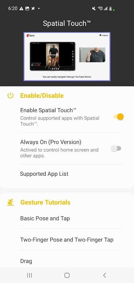 Akıllı telefonunuzu veya tabletinizi ekranınıza fiziksel olarak dokunmadan kontrol edin! Spatial Touch™'i tanıtıyoruz - yapay zeka tabanlı devrim niteliğinde bir uzaktan kumanda, bu sayede cihazınıza dokunmadan medya uygulamalarını el hareketleriyle yönetebilirsiniz. Bu araç, YouTube, Shorts, Netflix, Disney Plus, Instagram, Reels, TikTok ve desteklenebilecek birçok diğer uygulamayı zahmetsizce yönetmenizi sağlar. Rahat bir şekilde koltuğunuza yaslandığınızda ve kalkmak istemediğinizde, elleriniz meşgul veya kirliyken, örneğin yemek yaparken veya bulaşık yıkarken, ekranla temas etmekten kaçınmak istediğinizde idealdir; böylece ekranınızı yiyeceklerle lekelememiş olursunuz. Spatial Touch™, cihazlarınızı gerçek zamanlı olarak rahat ve sezgisel bir şekilde kontrol etmenizi sağlar. Spatial Touch™'in sunduğu avantajları deneyimlemek için indirin ve sevdiğiniz uygulamalarla yeni bir etkileşim deneyimi yaşayın.