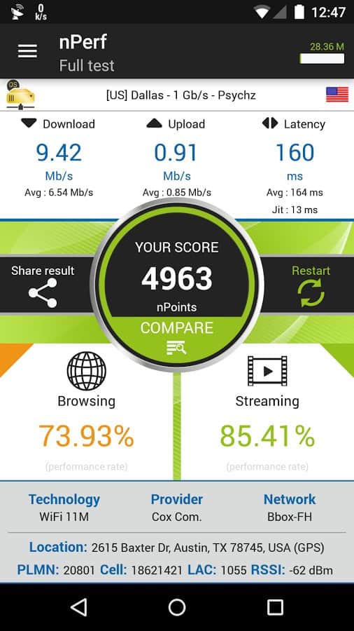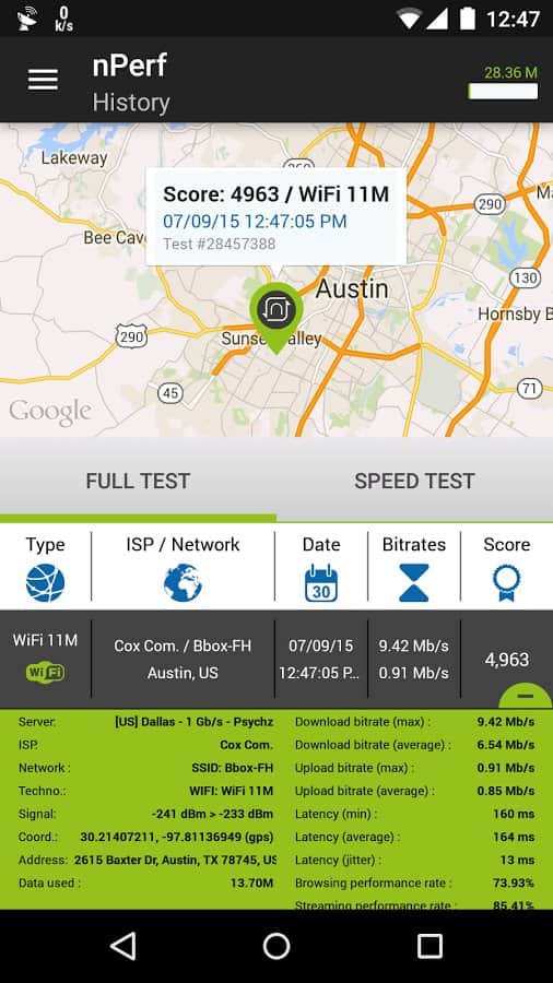 Hız Testi & QoS 3G 4G WiFi – internet hızınızı belirlemek için bir uygulamadır. Gerekli veriler alındığında, her şey dünya haritasında geçmişe kaydedilir. İsterseniz, kendi göstergelerinizi diğer kullanıcılarla karşılaştırabilirsiniz. Tüm bunların yanı sıra, uygulama internet trafiğinizi optimize edebilir, bu sayede internet masraflarınızı azaltabilirsiniz. Uygulama aşağıdaki bağlantı türleriyle çalışır: 2G, 3G, 4G, WiMAX, Wi-Fi (WiFi 802.11 / B / G / AC). Görüldüğü gibi, büyük bir iletişim aracı desteği sağlanmaktadır.
