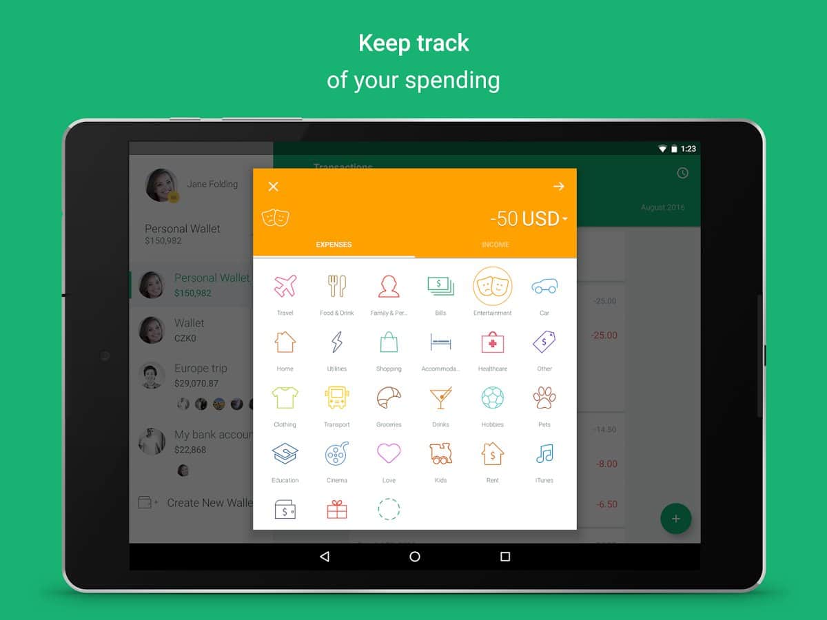 Spendee - Sürekli olarak parayı sokağa atıyorsanız ve bir türlü duramıyorsanız, o zaman harcamalarınızı bu basit ve çok renkli uygulama ile kontrol edin. Buraya gelirlerinizi kaydedebilir, ardından tüm harcamaları çıkarabilirsiniz. Ayrıca, tüm bunların görüntülenmesini değiştirebilir ve grafik şeklinde düzenleyebilirsiniz; bu arada tüm grafiği, daha rahat bir algı için kendi simgeleriyle bölümlere ayırabilirsiniz.